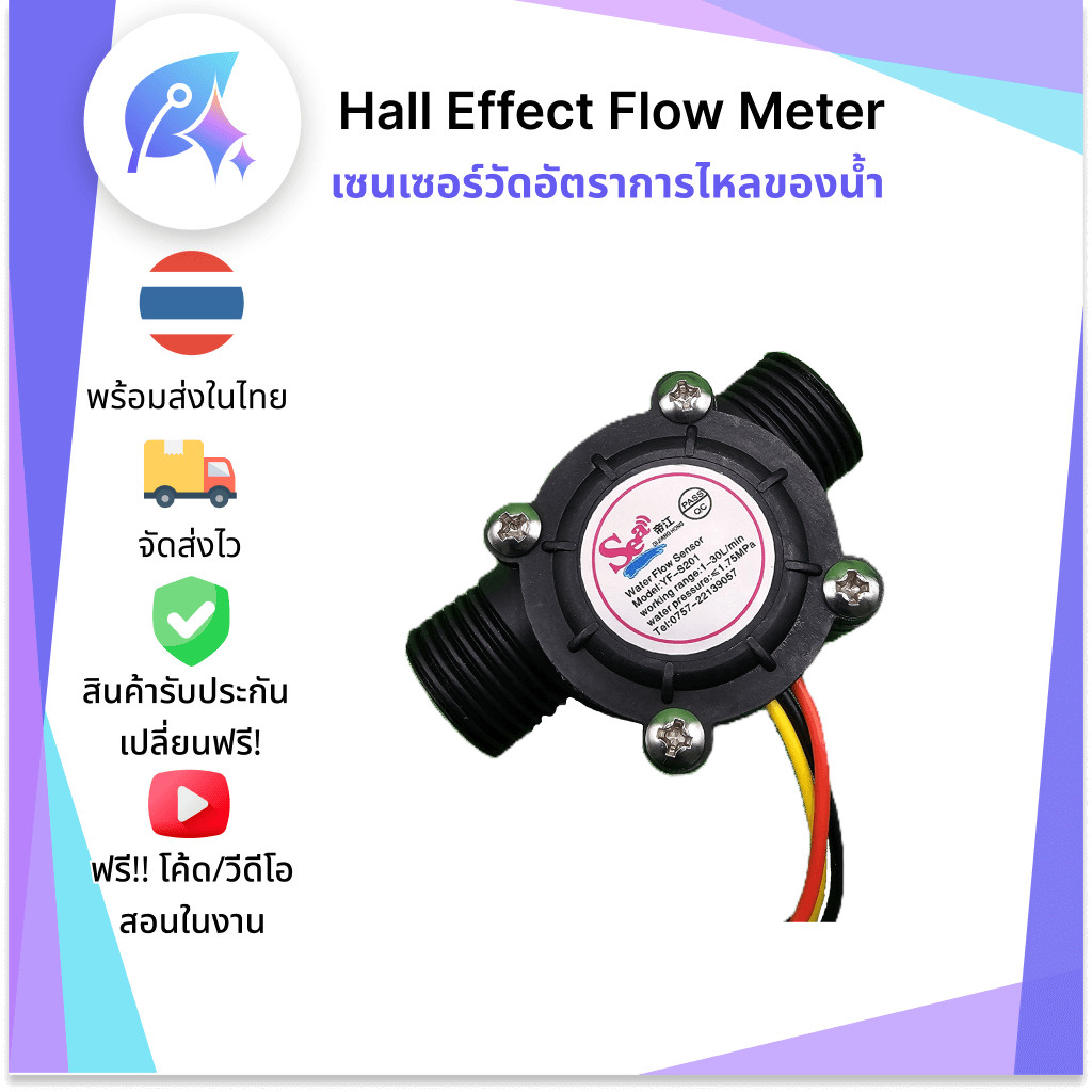 เซนเซอร์วัดอัตราการไหลของน้ำ Hall Effect Flow Meter YF-S201 SNP-00019