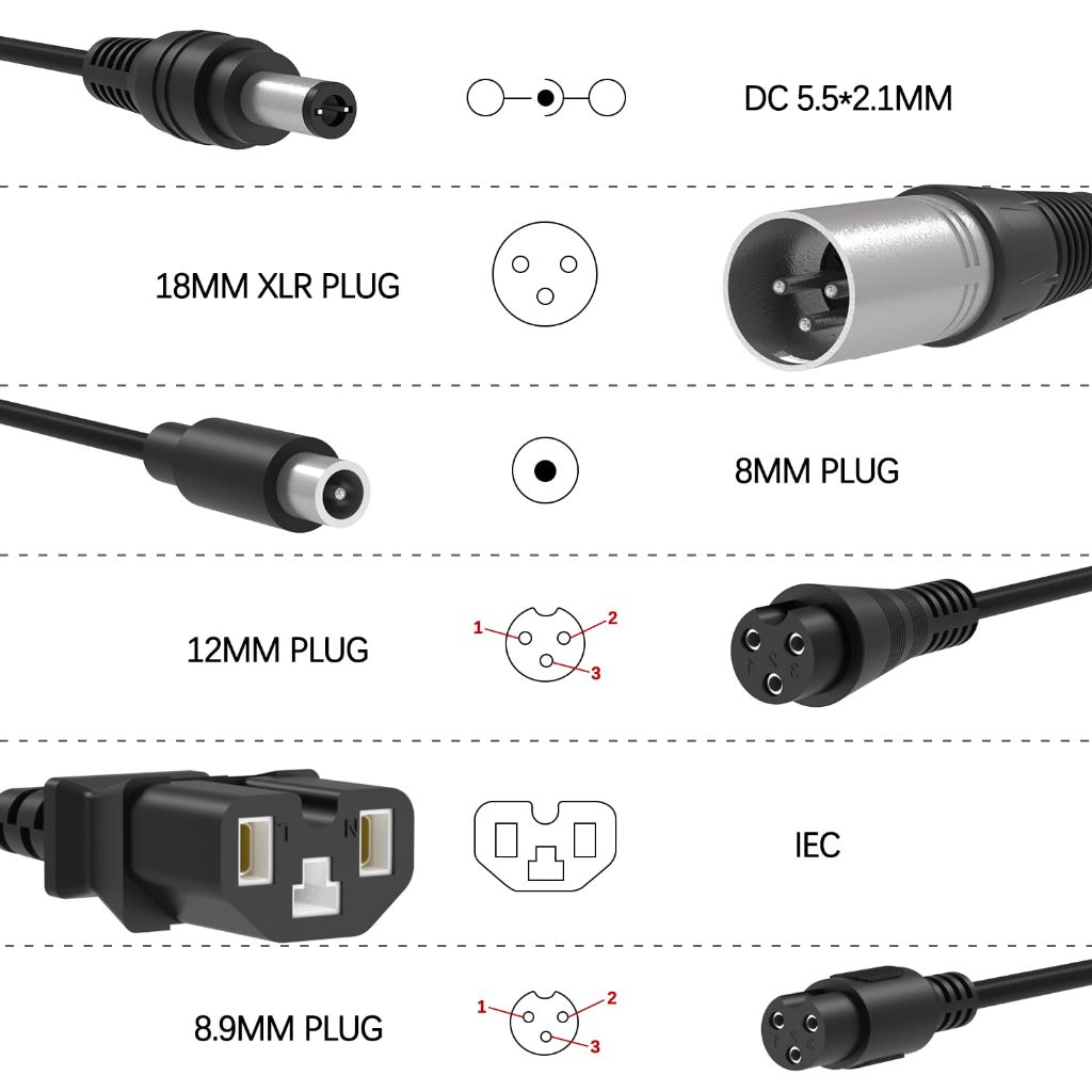 ที่ชาร์จแบตเตอรี่ 29.4V/42V/54.6V 2A Fast Charger with 7 Plugs Universal Lithium Battery Lithium-ion อะแดปเตอร์ไฟฟ้า