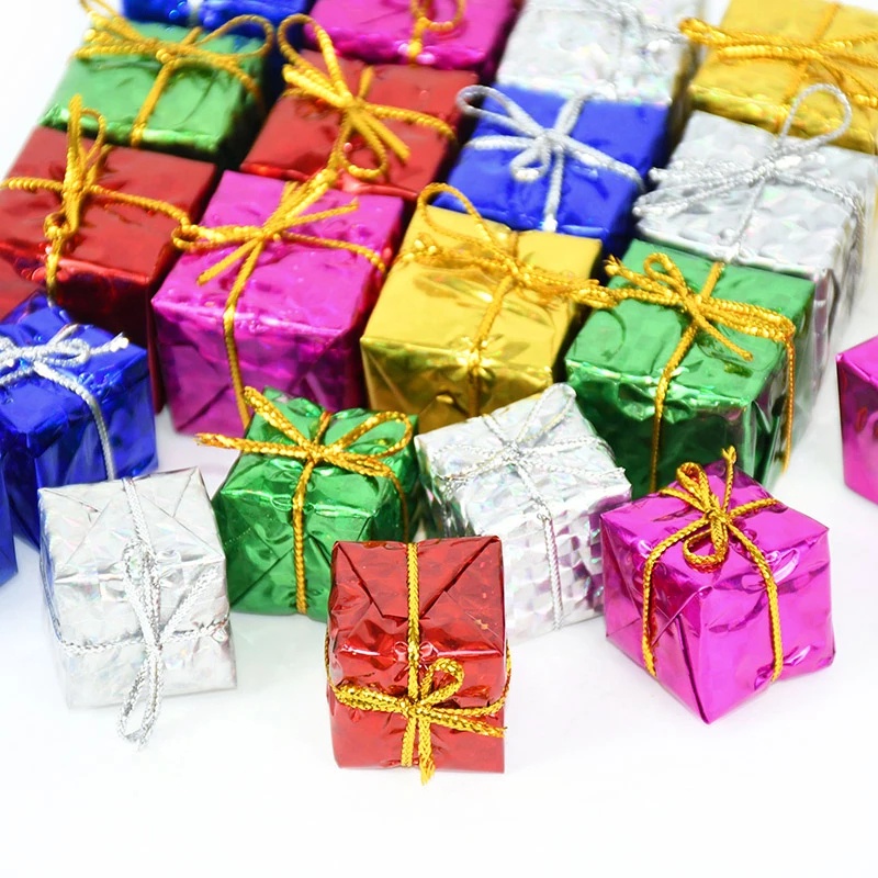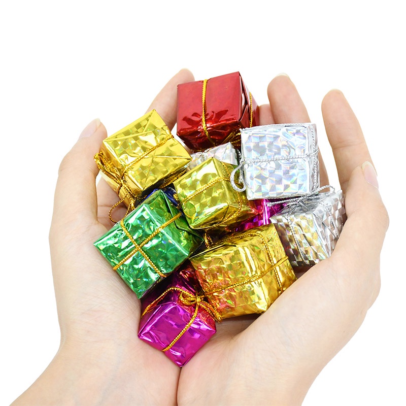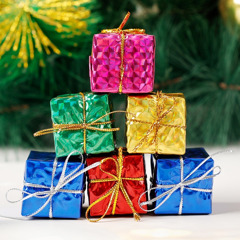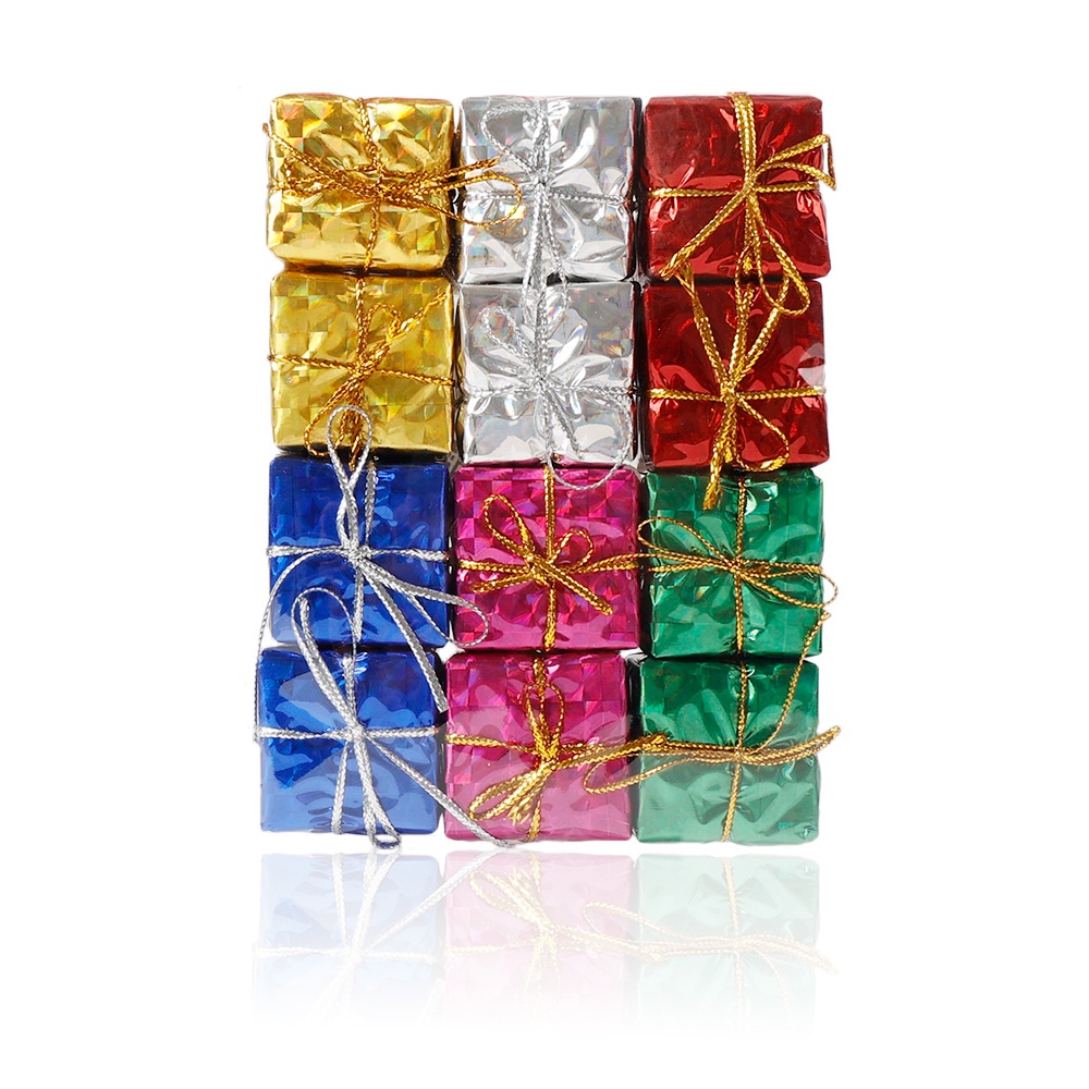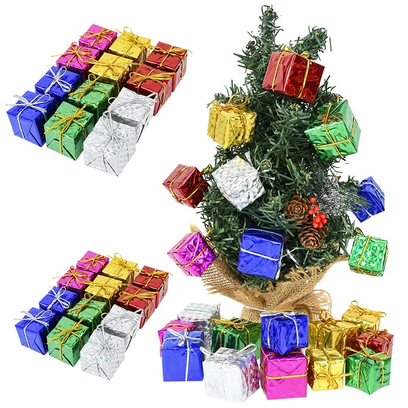 12/24 ชิ้นคริสต์มาสมินิเลเซอร์โฟมกล่องของขวัญสําหรับแขวนประดับจี้ต้นคริสต์มาส