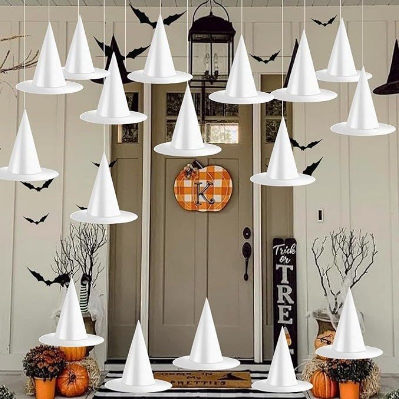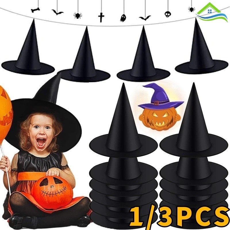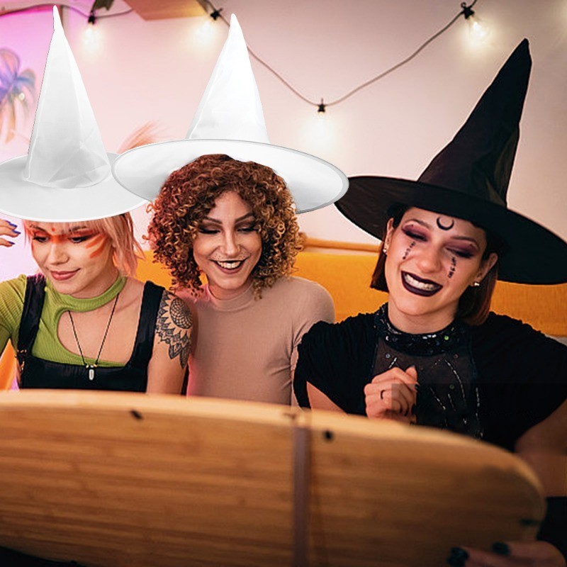 1/3ชิ้นที่เรียบง่ายสีดําสีขาวฮาโลวีนคอสเพลย์เครื่องแต่งกาย พี เชือก พ่อมดหมวก-น่ารักคลาสสิกฮาโลวีนธีมพรรคแม่มดมายากลหมวก
