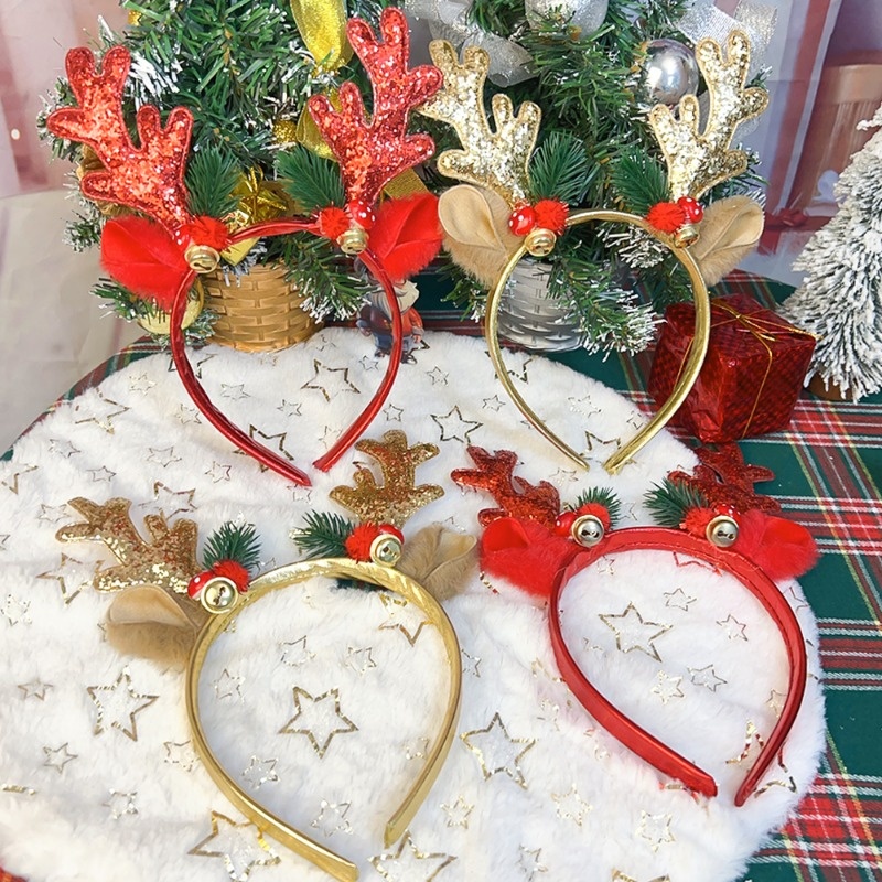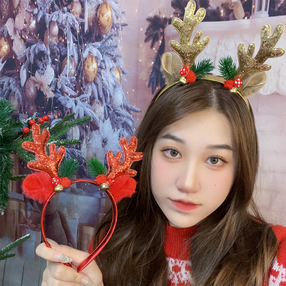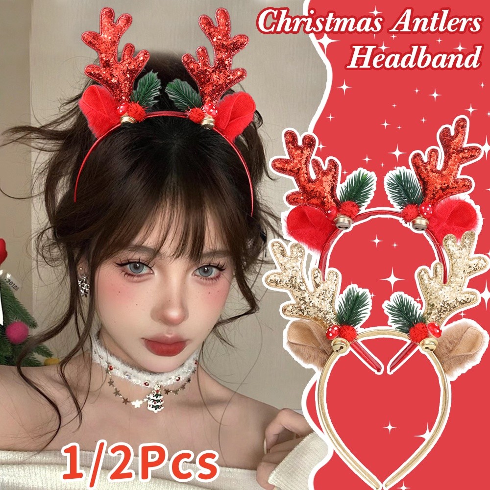 1/2 ชิ้นผู้ใหญ่เด็ก Xmas Party Dress Up ที่คาดผม-เลื่อม Reindeer Antlers หูสาวผม Hoop- Merry Christmas Photo Props ผม Band