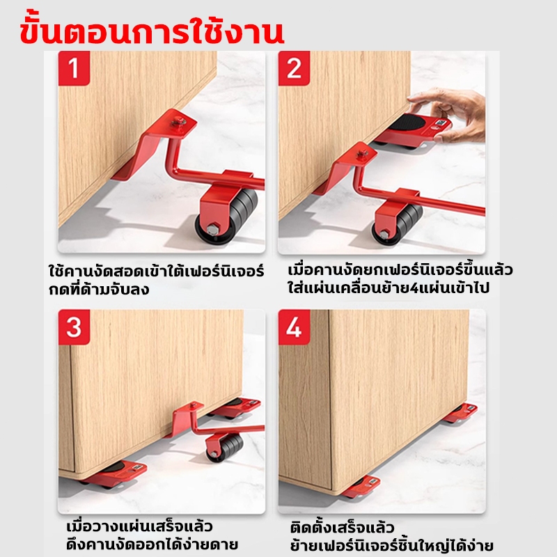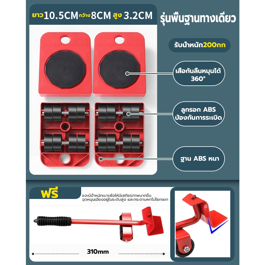 5 ชิ้น อุปกรณ์ช่วยย้ายของ รับน้ำหนักได้ 1500กก. อุปกรณ์เคลื่อนย้ายเฟอร์นิเจอร์ แม่แรง เครื่องย้ายของหนักมีล้อเลื่อน