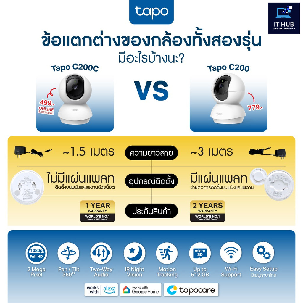 TP-Link กล้องวงจรปิดไร้สาย Tapo WiFi Indoor รุ่น C100 / C200 / C210 / C211 / C220 สินค้าแท้ ประกันศูนย์ 2 ปี