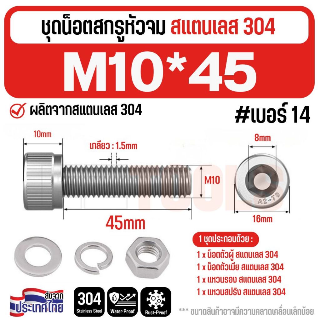 ชุดสกรูหัวจม น็อตหัวจม พร้อมน็อตตัวเมียและแหวน สแตนเลส 304 M6-M10 เกลียวมิล เกลียวหยาบ สกรูหัวจมหกเหลี่ยม ทนสนิม