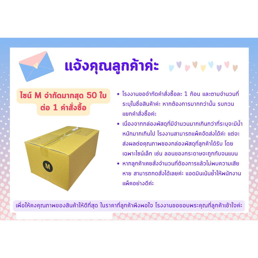 20 ใบ กล่อง เบอร์ M กล่องไปรษณีย์ กล่องพัสดุ 27 x 43 x 20 cm. กล่องหนา 5 ชั้น TPB Paper