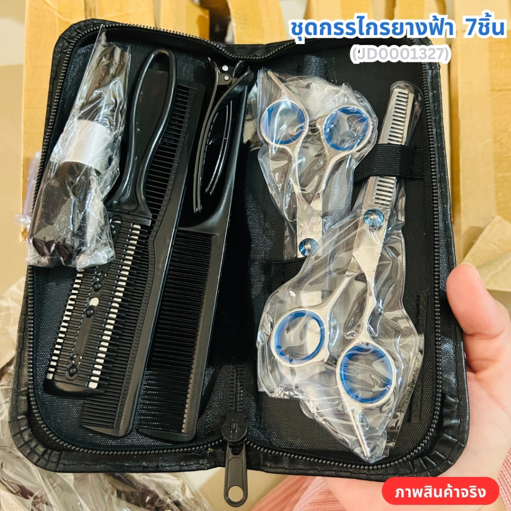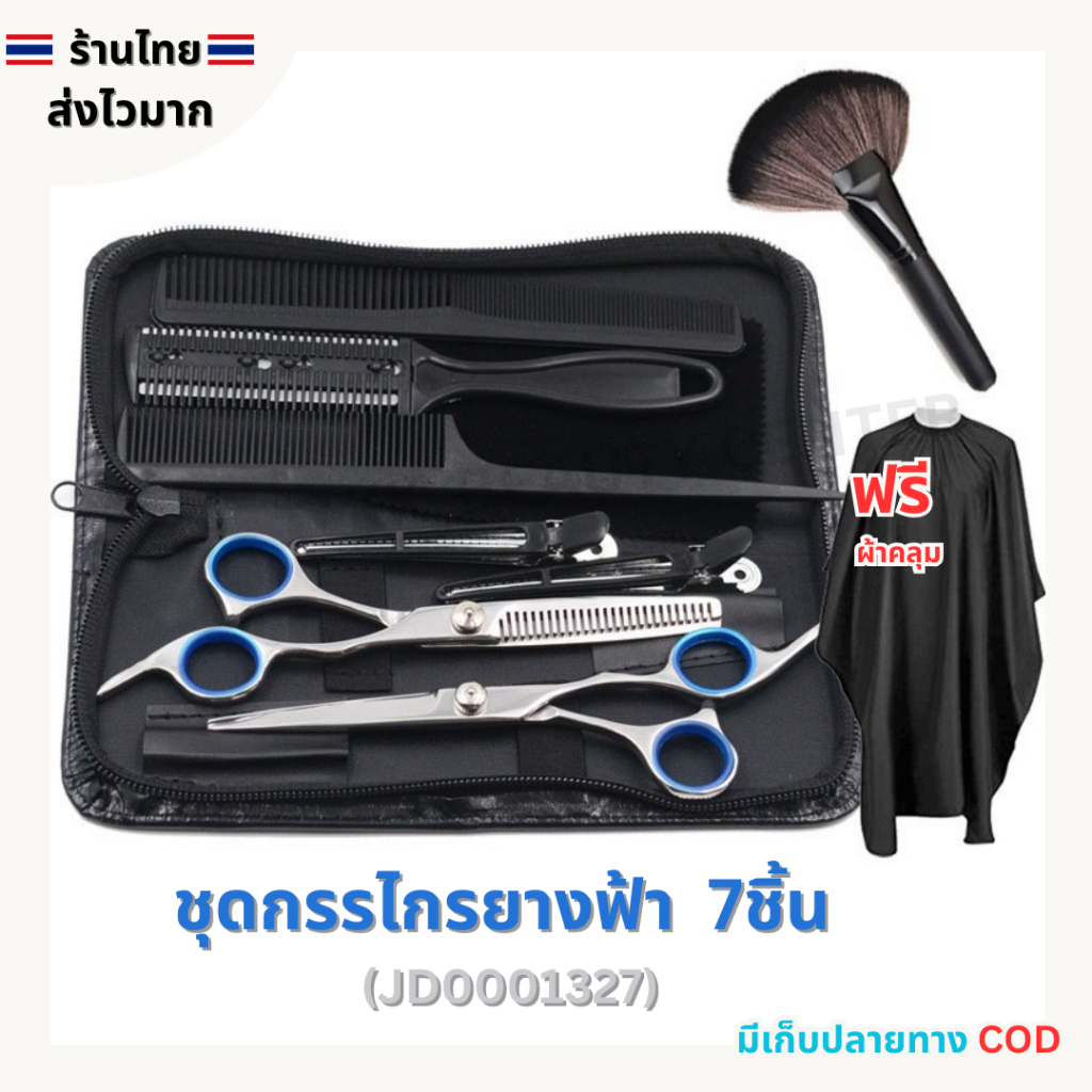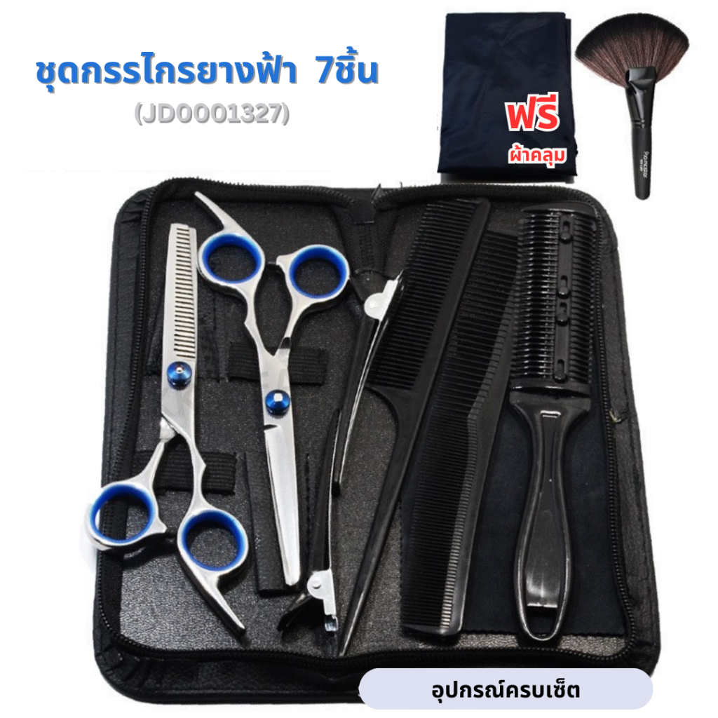 (สินค้าส่งจากไทย) ชุดกรรไกรยางฟ้า 7ชิ้น แถมฟรี ผ้าคลุม ใช้สำหรับตัดแต่งทรงผม (รหัส JD0001327 )