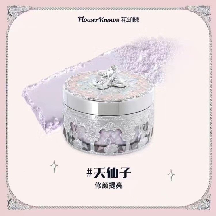 FLOWER KNOWS แป้งฝุ่น เซตเมคอัพและเพิ่มความกระจ่างใส ควบคุมความมันเนื้อแมท ติดทนนาน บัลเล่ต์บ็อกซ์