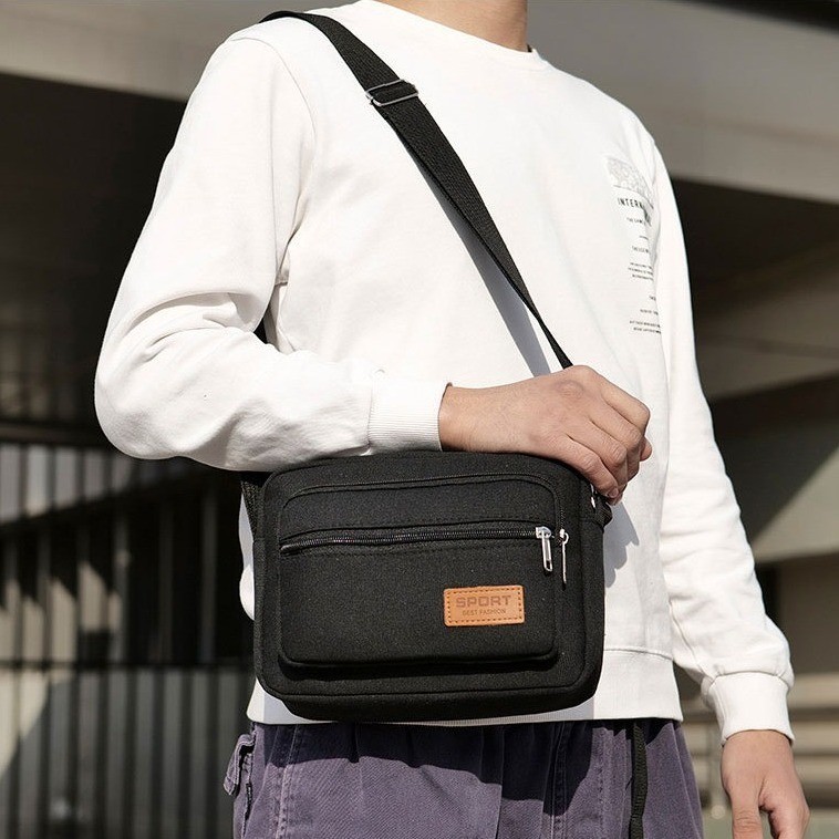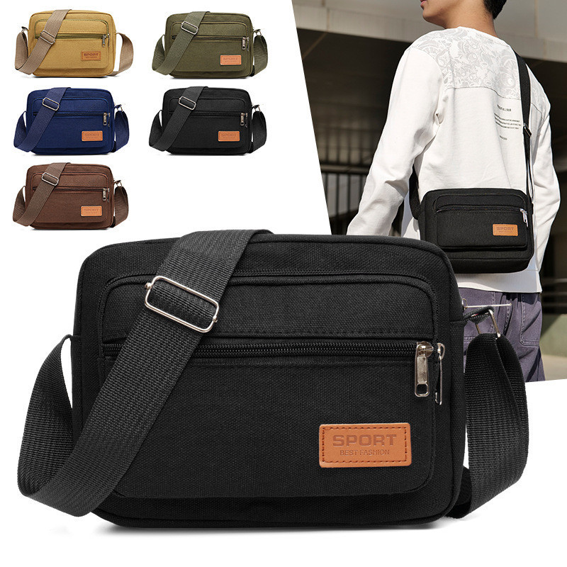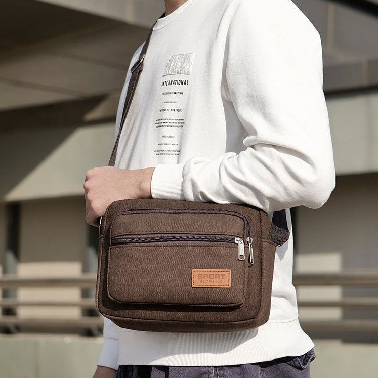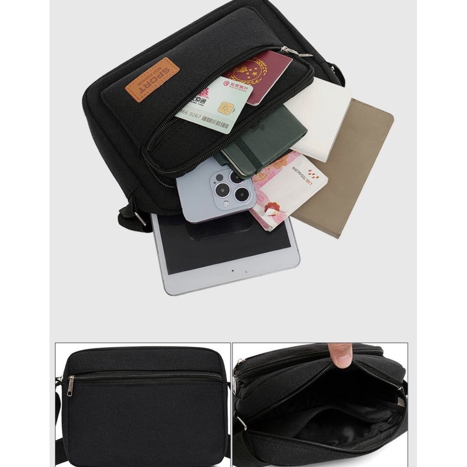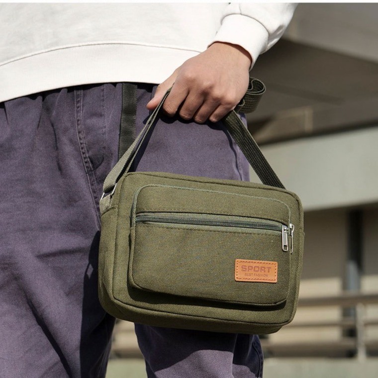 LD-shop :กระเป๋าคาดเอว ซิปเยอะมีหลายช่อง งานผ้าแคนวาส man014