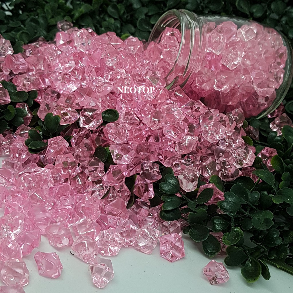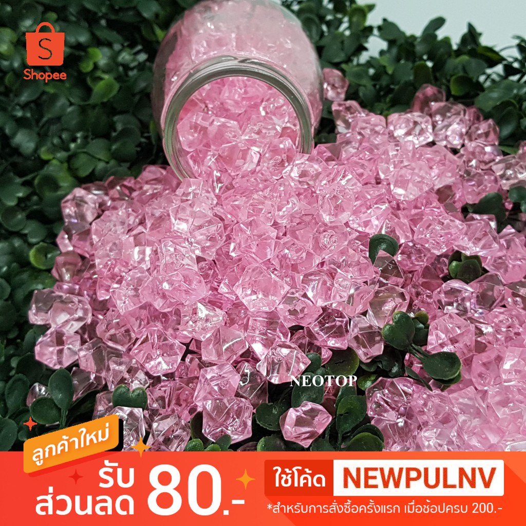 หินสายรุ้ง สีชมพูอ่อน#03 ขนาด 1.5cm. ไม่มีรู 1แพ็ค400เม็ดขึ้นไป - neotop