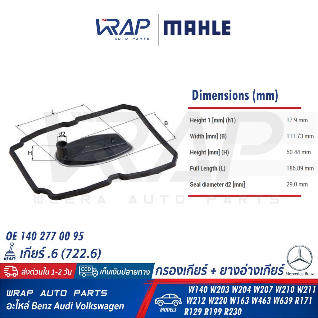 ⭐ BENZ ⭐ กรองเกียร์ + ยางอ่างเกียร์ MAHLE HX81/1D เบนซ์ เกียร์ .6 722.6 W210 W211 W212 W203 W204 W207 W220 R171 H182KIT