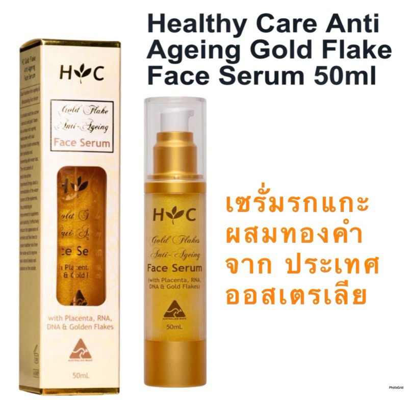 Healthy Care Anti Ageing Gold Flake Face Serum 50ml. เซรั่มรกแกะผสมทองคำ สินค้านำเข้าจากประเทศออสเตรเลีย