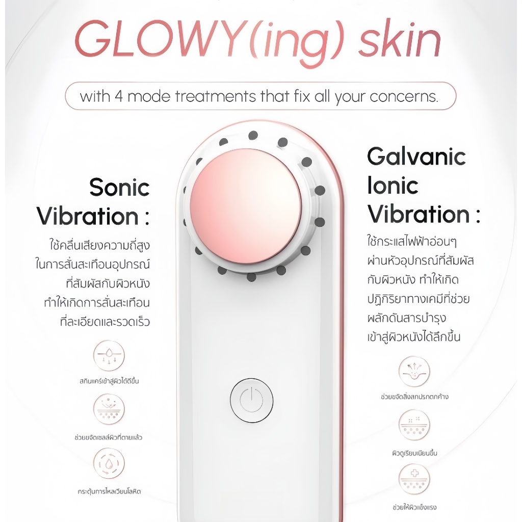 Glowy Care เครื่องนวดหน้ากัลวานิค 4 โหมดทรีตเมนต์ นวดหน้าพร้อมทำความสะอาดผิวใ ใช้ได้ทุกวัน