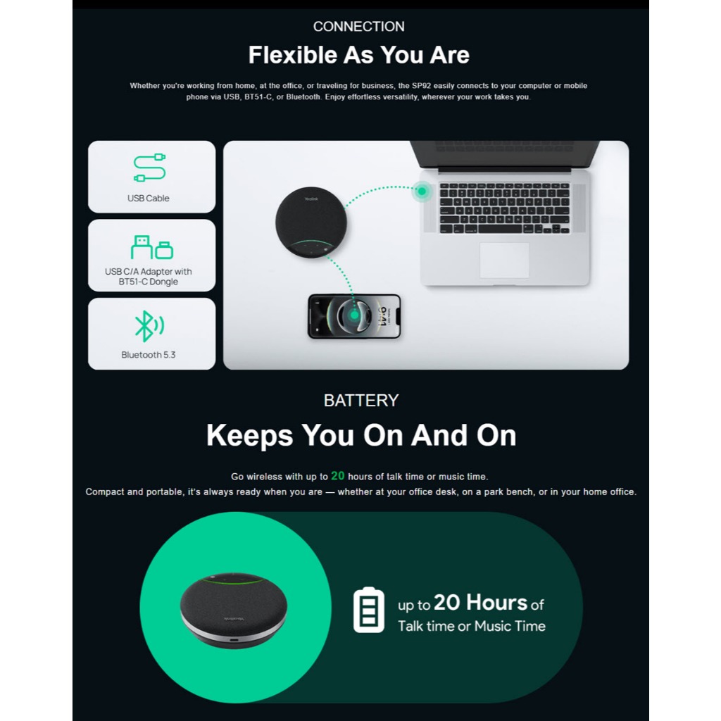 [New] Yealink SP92 ลำโพง Bluetooth 5.3 สำหรับการประชุมแบบมือโปร พกพาสะดวก ตัดรบกวน ตัดเสียงสะท้อน