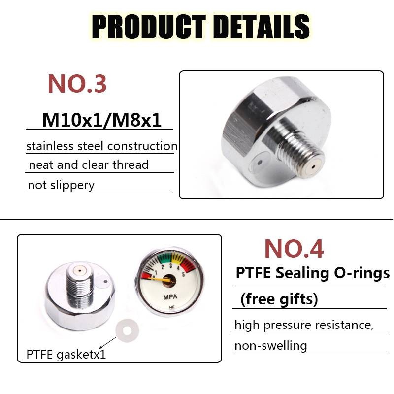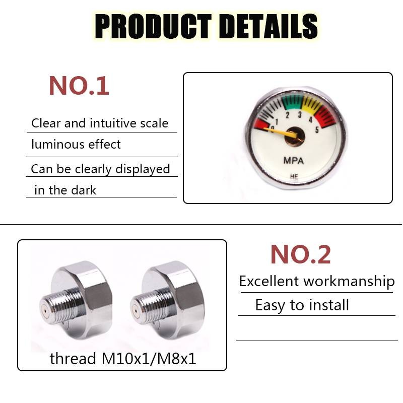 เครื่องวัดความดันอากาศ PCP 5Mpa 10Mpa 20Mpa 30Mpa 35Mpa 40Mpa 1 นิ้ว เกลียว M10x1 25 มม. 1 ชิ้น