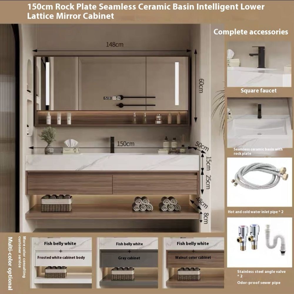 ชุดอ่างล้างหน้าแบบเรียบง่ายเซรามิกแผ่นหินอ่อนไร้รอยต่อสำหรับห้องน้ำ