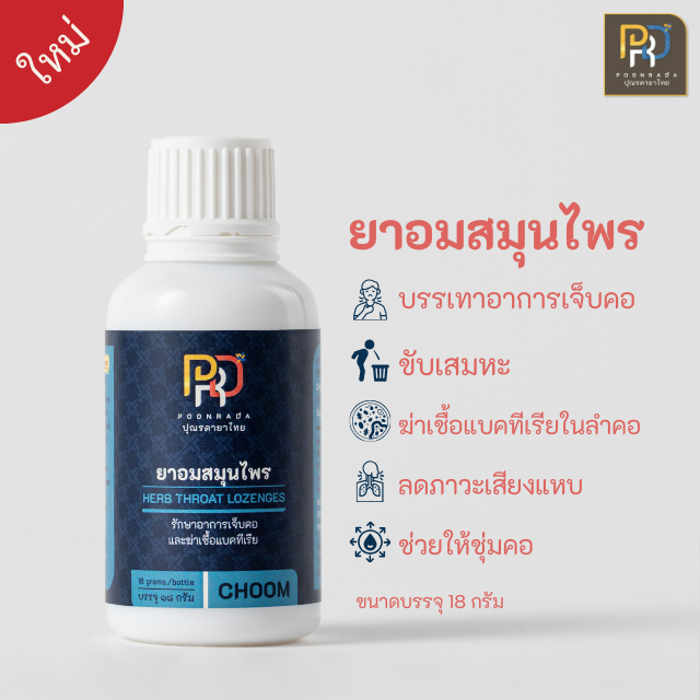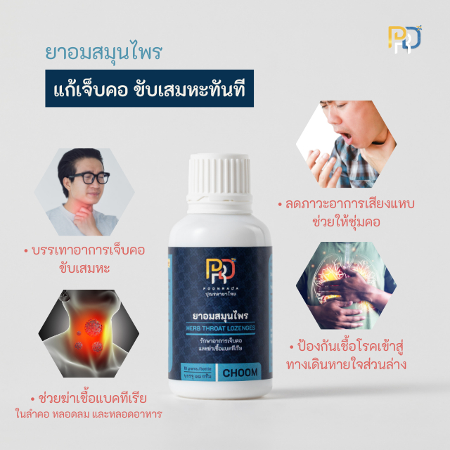 Choom ยาอมสมุนไพร ละลายเสมหะในลำคอ แก้ไอแห้ง ทำให้คอชุ่มชื้น แก้ไอเรื้อรัง ไซนัสอักเสบ กรดไหลย้อน
