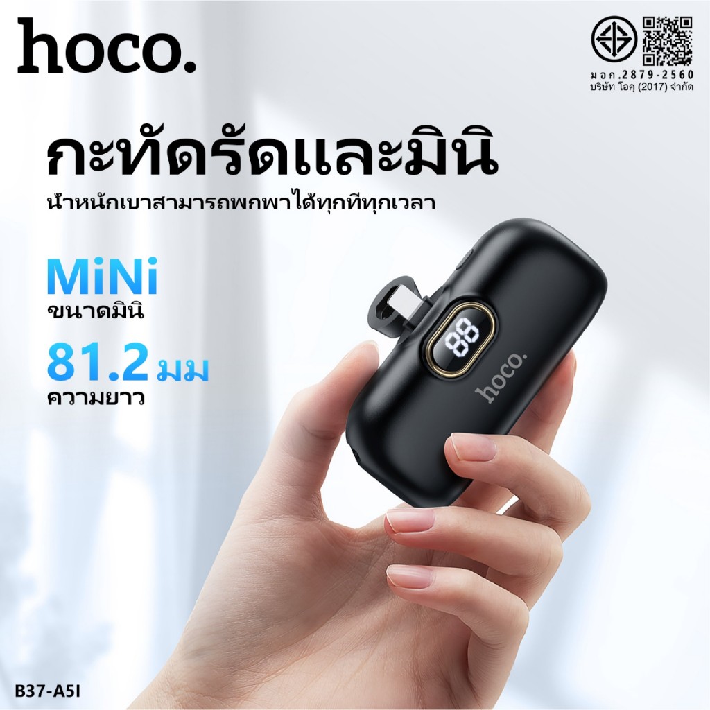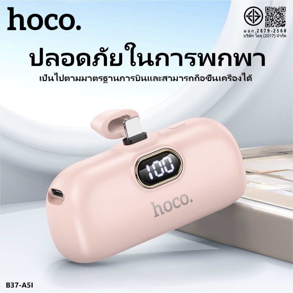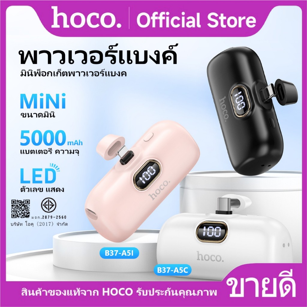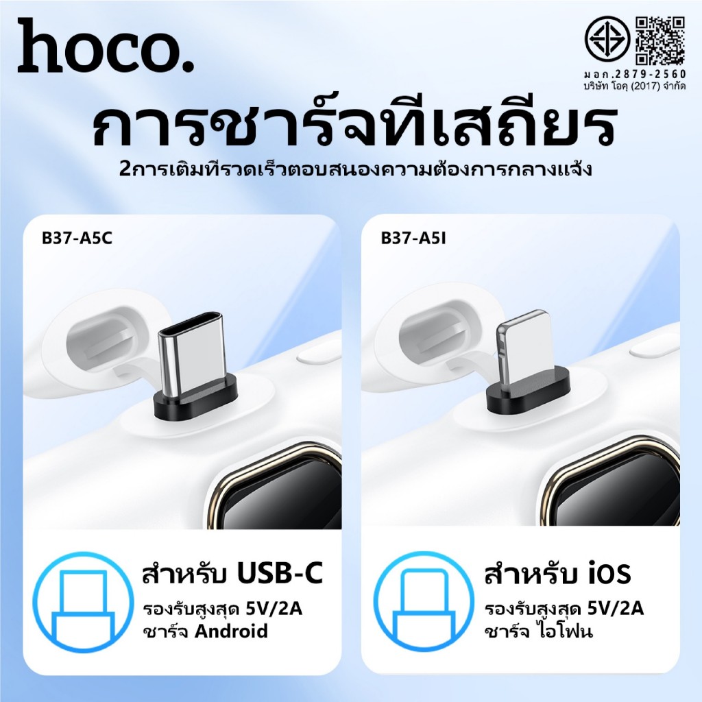 HOCO A5I A5C แบตสำรอง Power Bank ความจุ5000mAh สำหรับ iOS/Type-C ไม่ต้องพกสาย Fast Quick Charge ชาร์จเร็ว