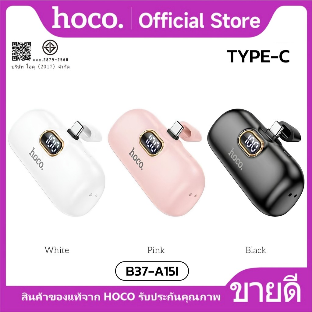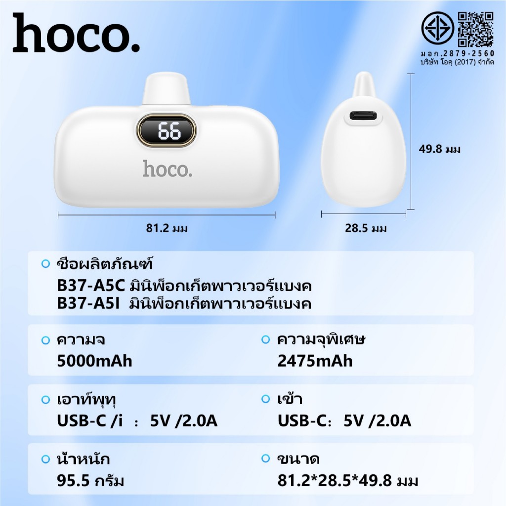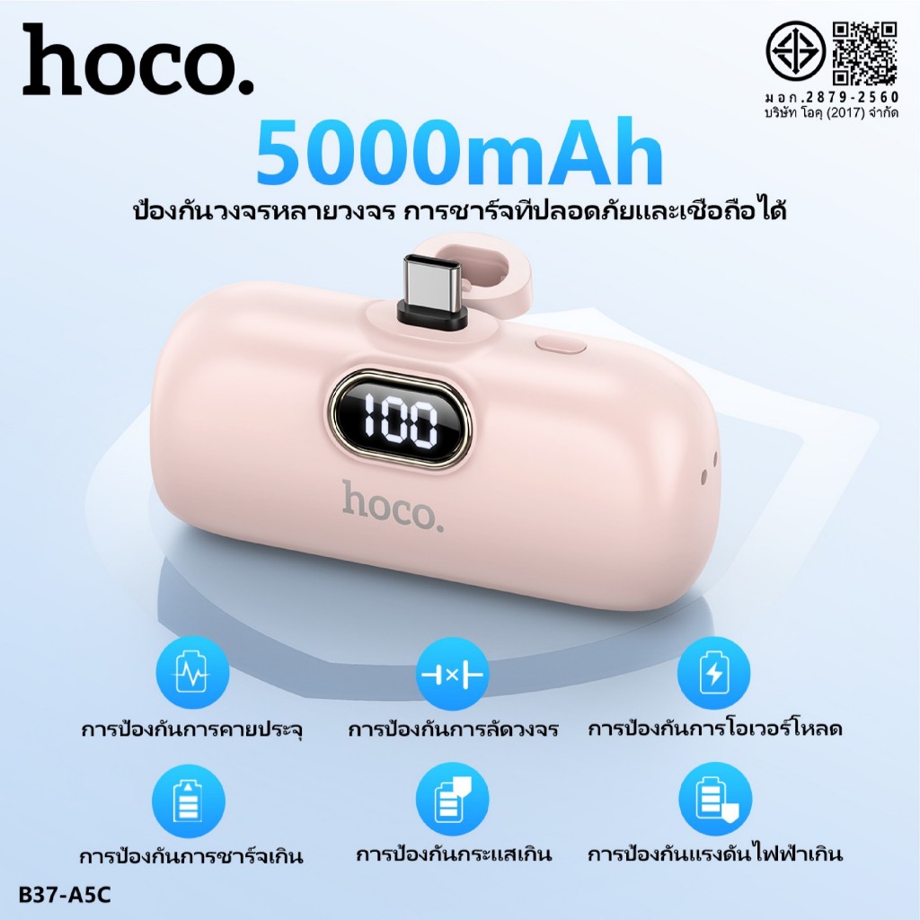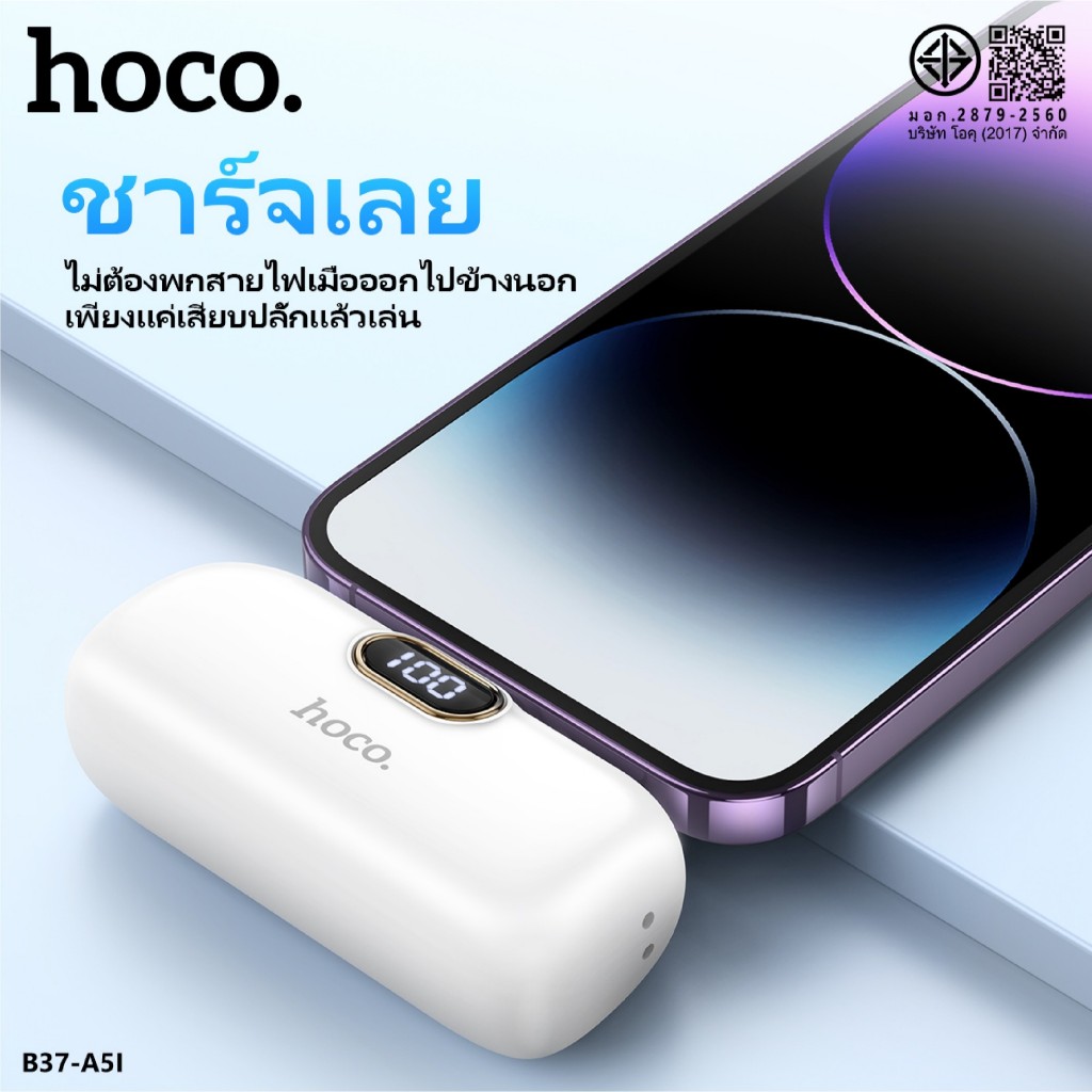 HOCO A5I A5C แบตสำรอง Power Bank ความจุ5000mAh สำหรับ iOS/Type-C ไม่ต้องพกสาย Fast Quick Charge ชาร์จเร็ว