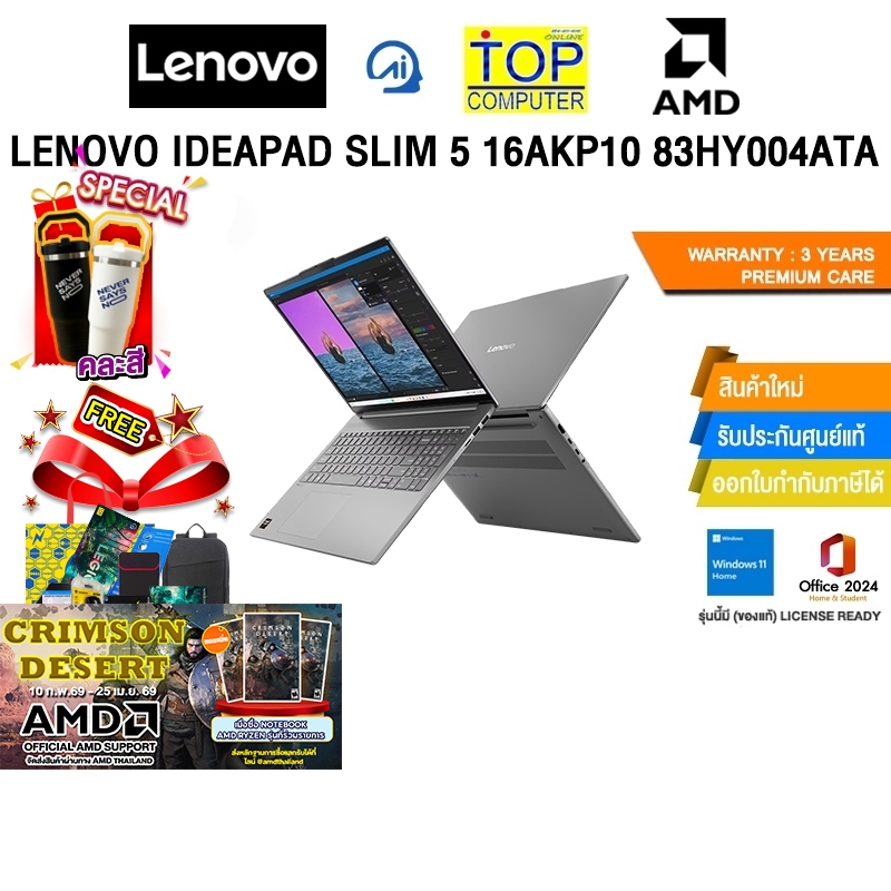 LENOVO IDEAPAD SLIM 5 16AKP10 83HY004ATA /Ryzen AI 7 350/ประกัน 3 Years Premium Care