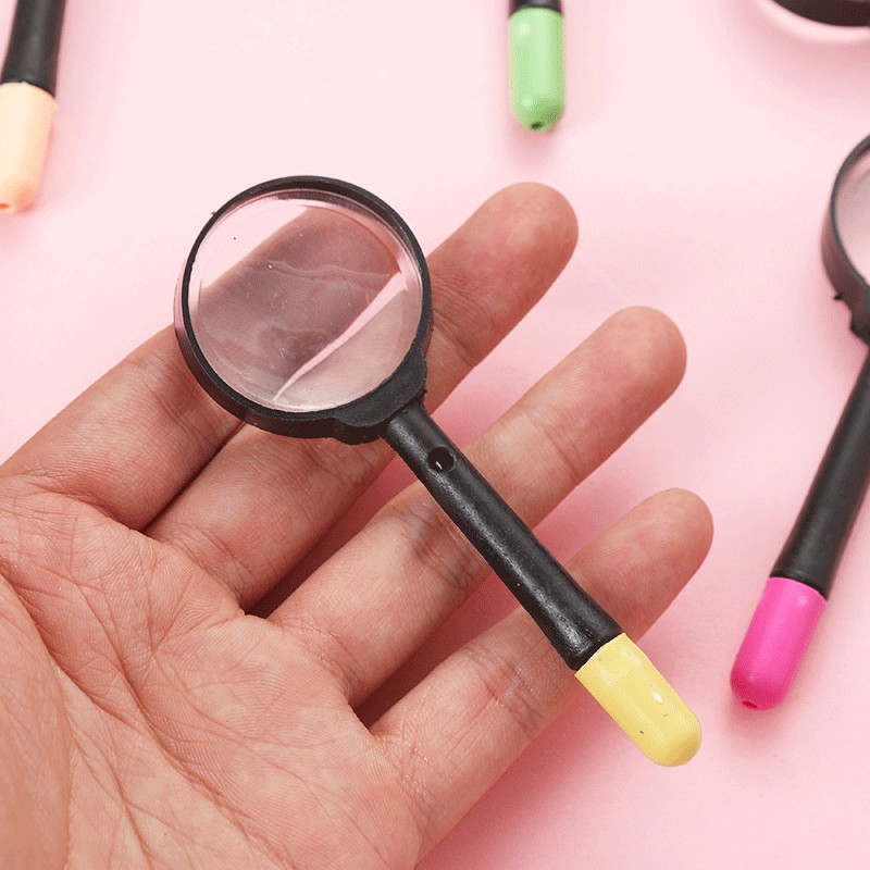 เด็กวิทยาศาสตร์การศึกษาการ์ตูนแว่นขยายสีดําขนาดเล็กของเล่นปากกา งดงาม เขียนได้ ความแปลกใหม่แว่นขยายพลาสติ กของเล่น