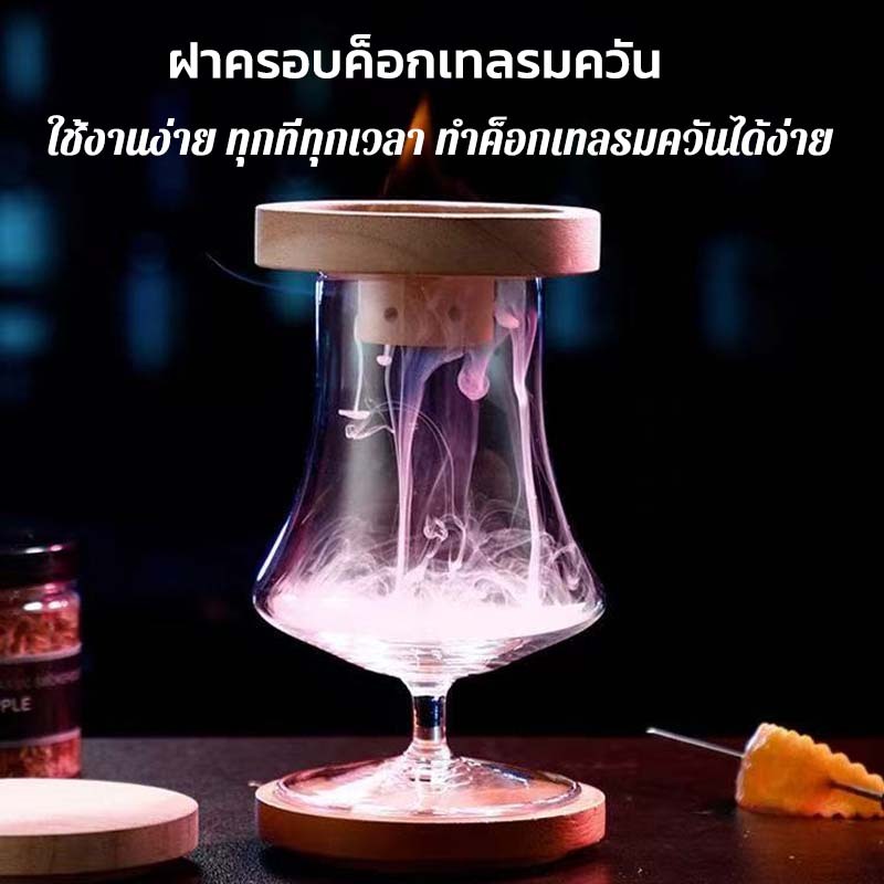 ชุด 7 ชิ้น ชุดค็อกเทลรมควัน พร้อมชิปไม้ ที่กรองควัน วัสดุไม้แท้ อุปกรณ์ผสมเครื่องดื่มบาร์
