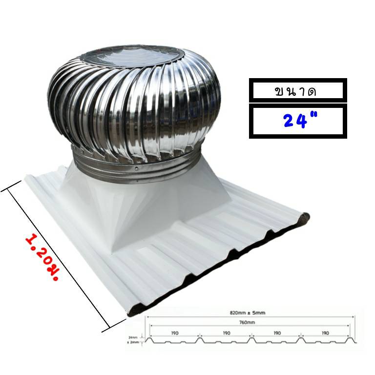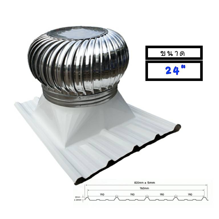 ลูกหมุนระบายอากาศขนาด 24 นิ้ว พร้อมฐานลอนเมทัลชีท1.20,1.50ม.