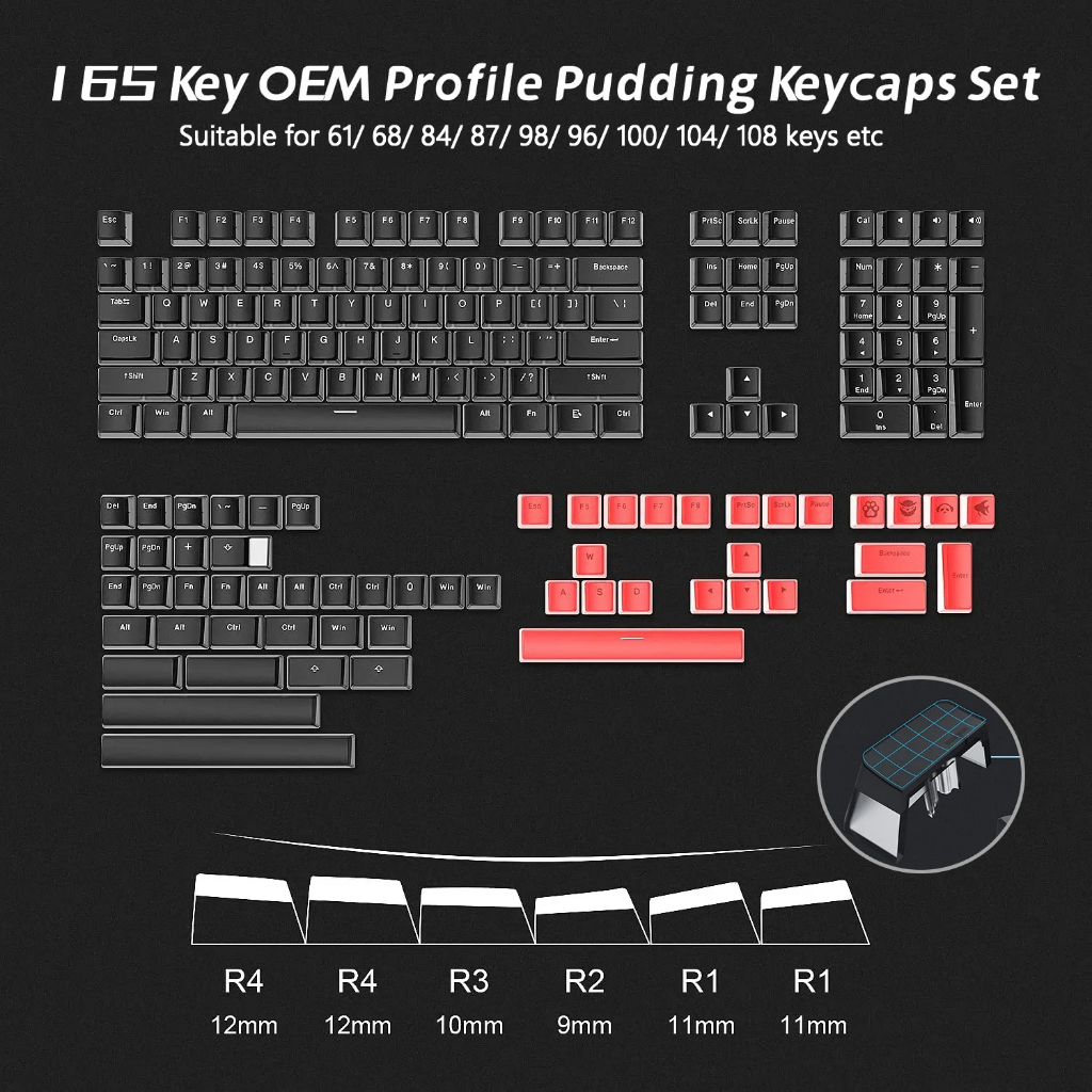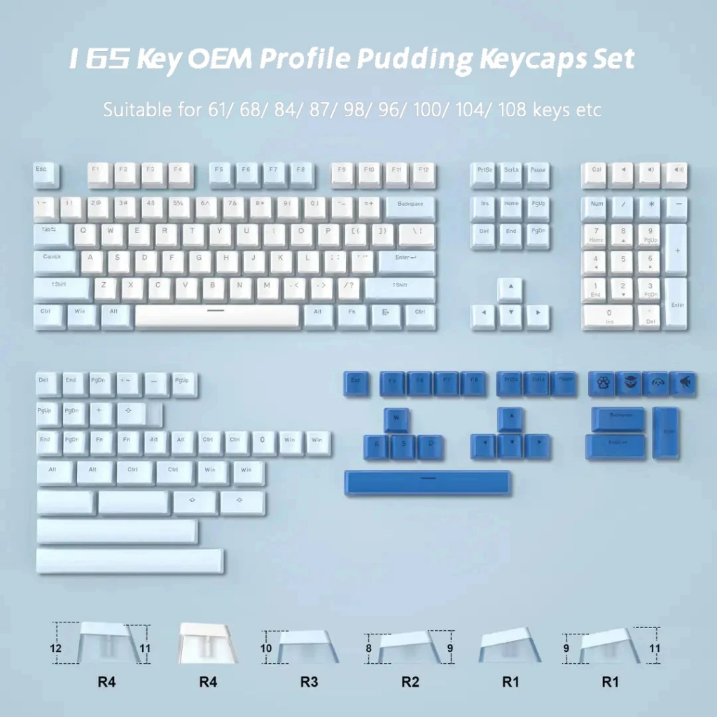 165 Key Pudding PBT Keycaps Custom OEM โปรไฟล์ Double Shot Keycap ชุดสําหรับ 100% 75% 65% 60% Gaming คีย์บอร์ด