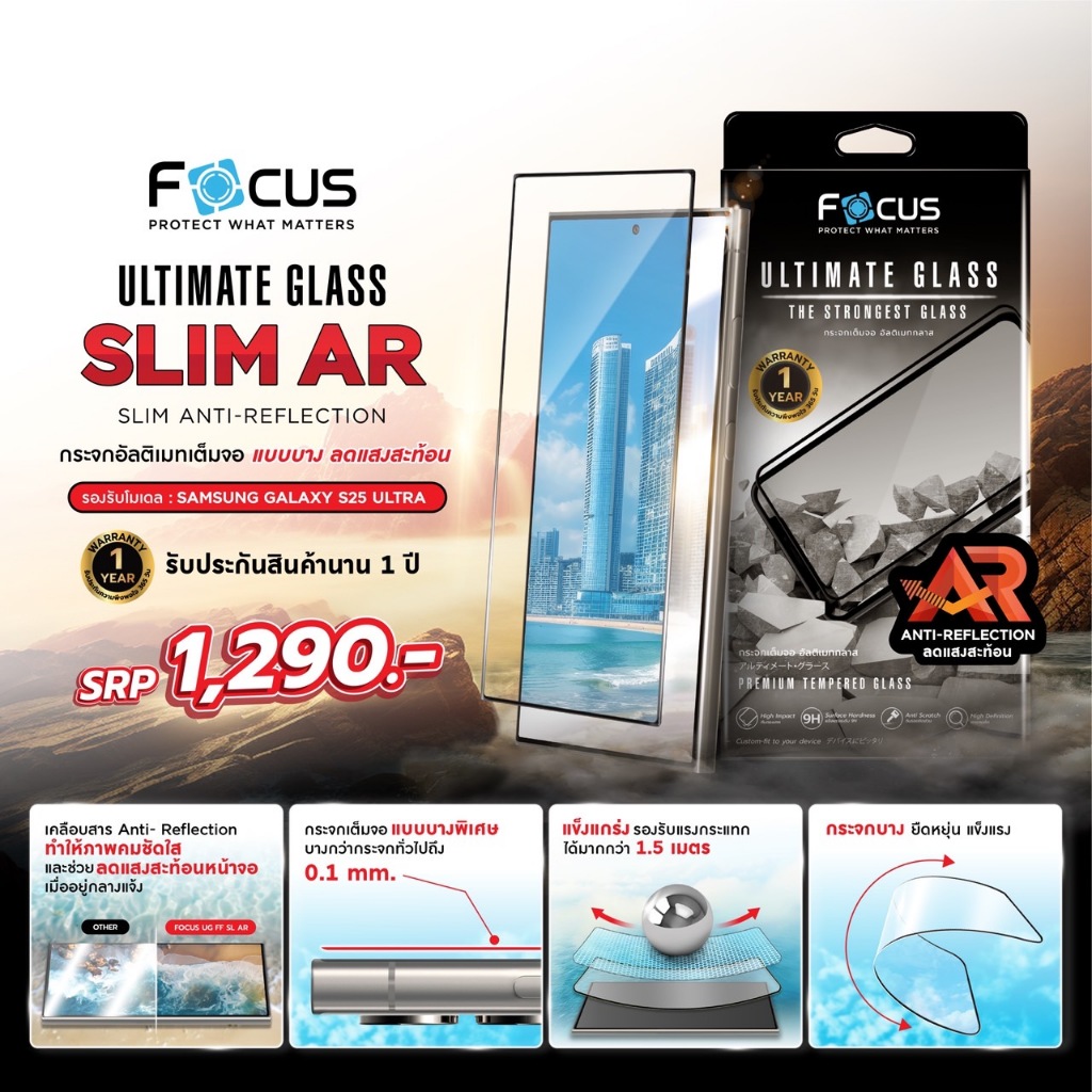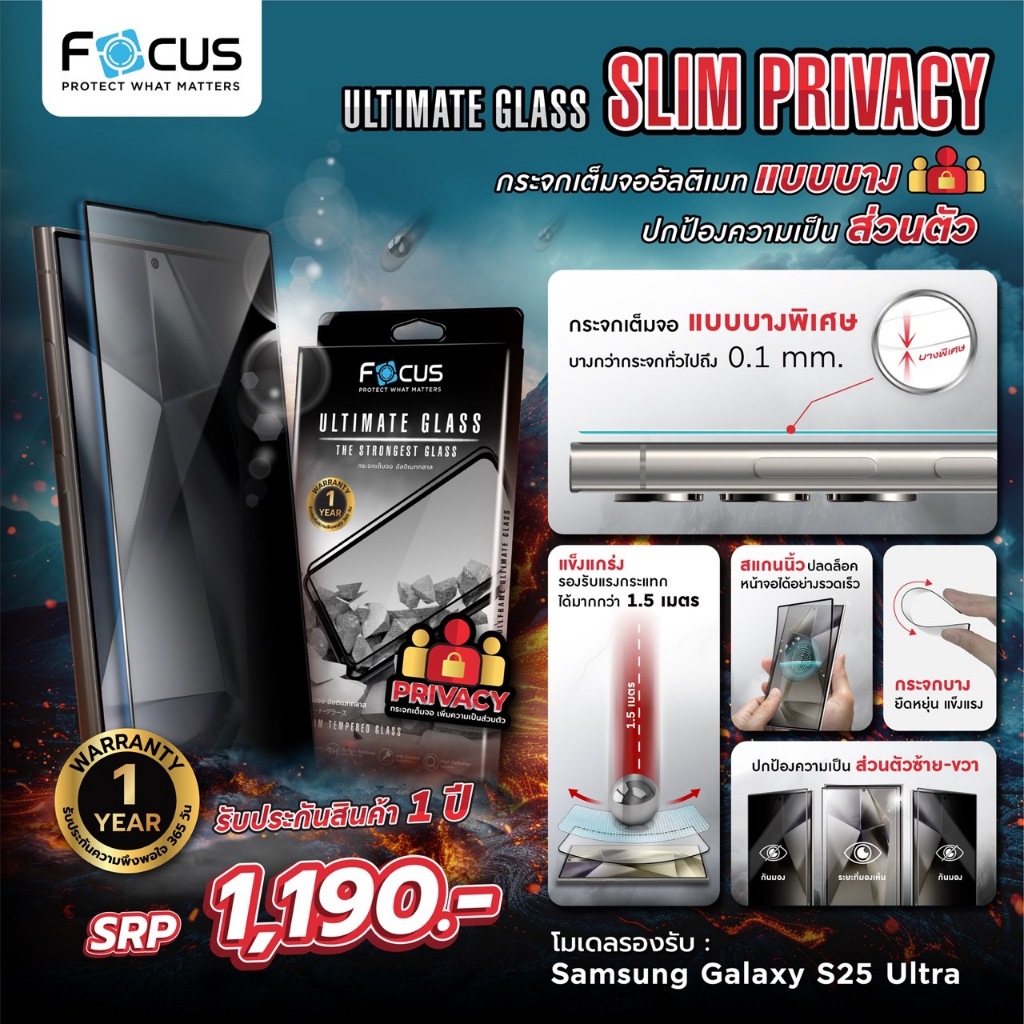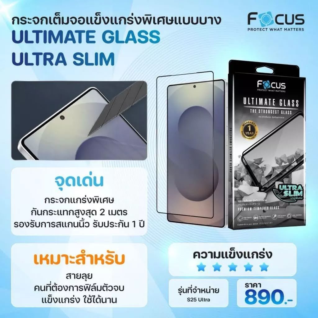 (รับประกัน1ปี) Focus Ultimate Glass ฟิล์มกระจกเต็มจอ แบบบางพิเศษ สำหรับ Samsung Galaxy S25 Ultra