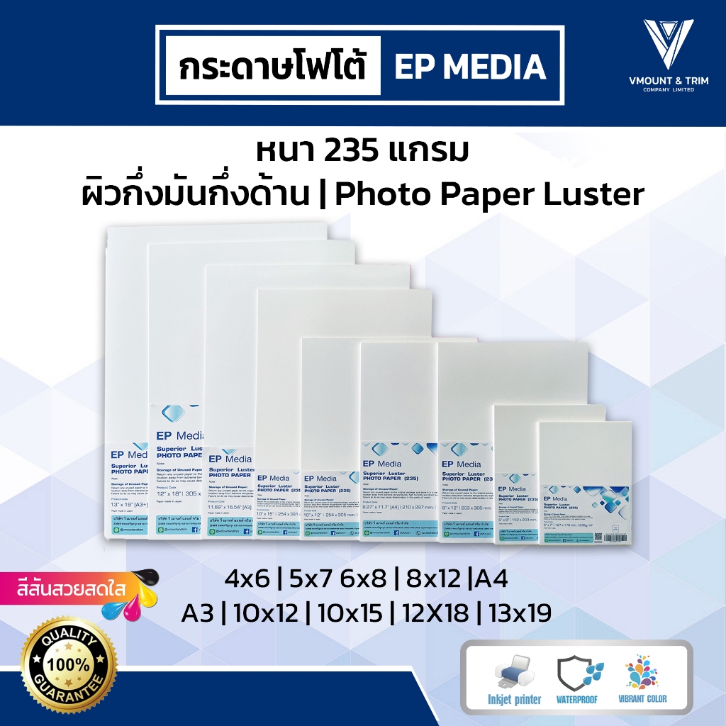 EP Media 10x12 นิ้ว กระดาษโฟโต้ ผิวกึ่งมันกึ่งด้าน 235g (10 แผ่น)