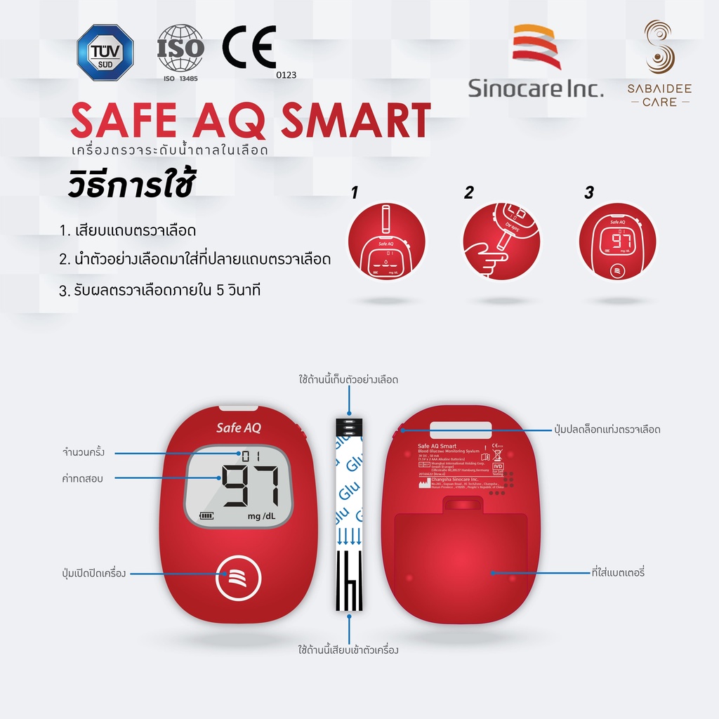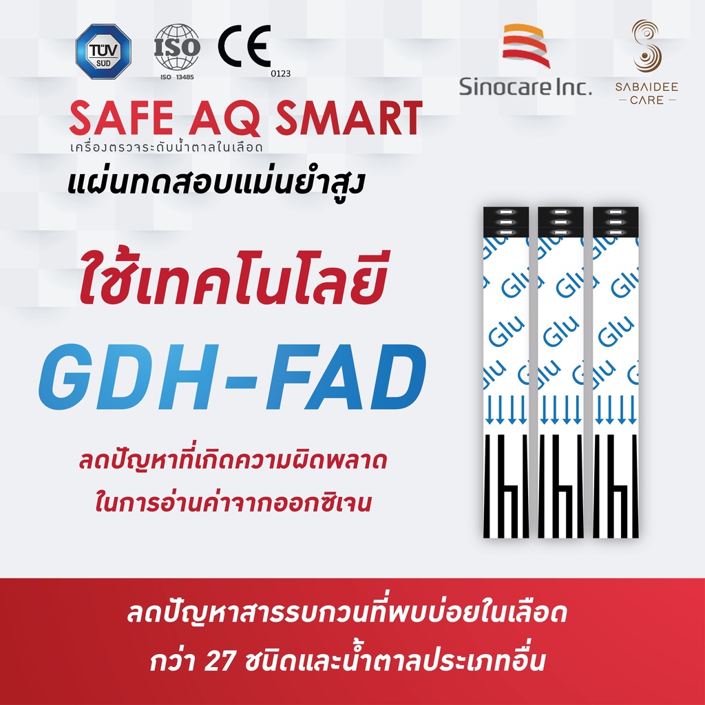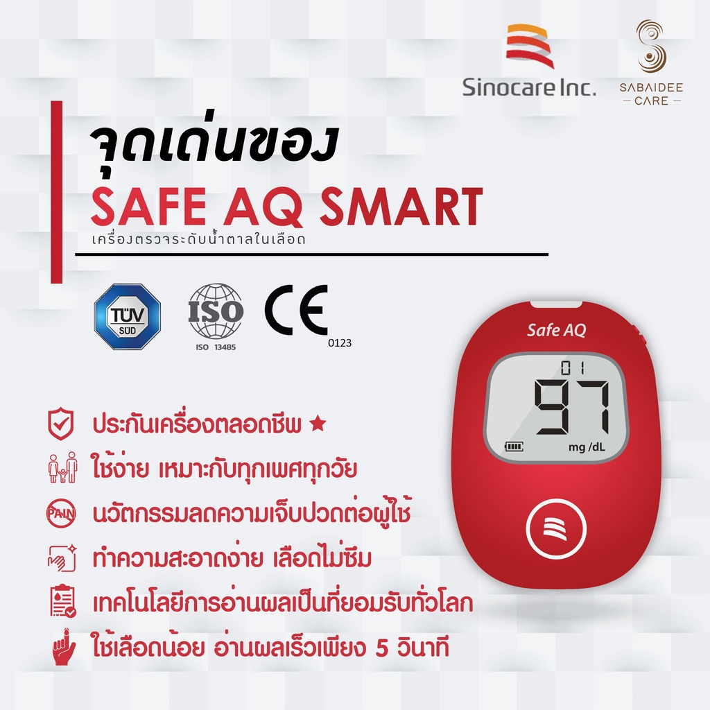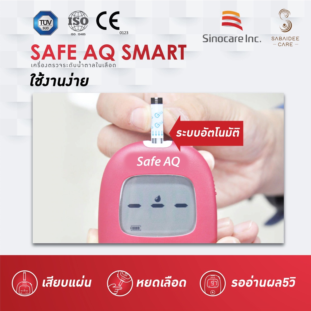Sinocare แผ่นตรวจระดับน้ำตาลในเลือด รุ่น Safe AQ (25ชิ้น) exp.06/2026 แผ่นตรวจน้ำตาล แถบตรวจน้ำตาล แถบตรวจเบาหวาน