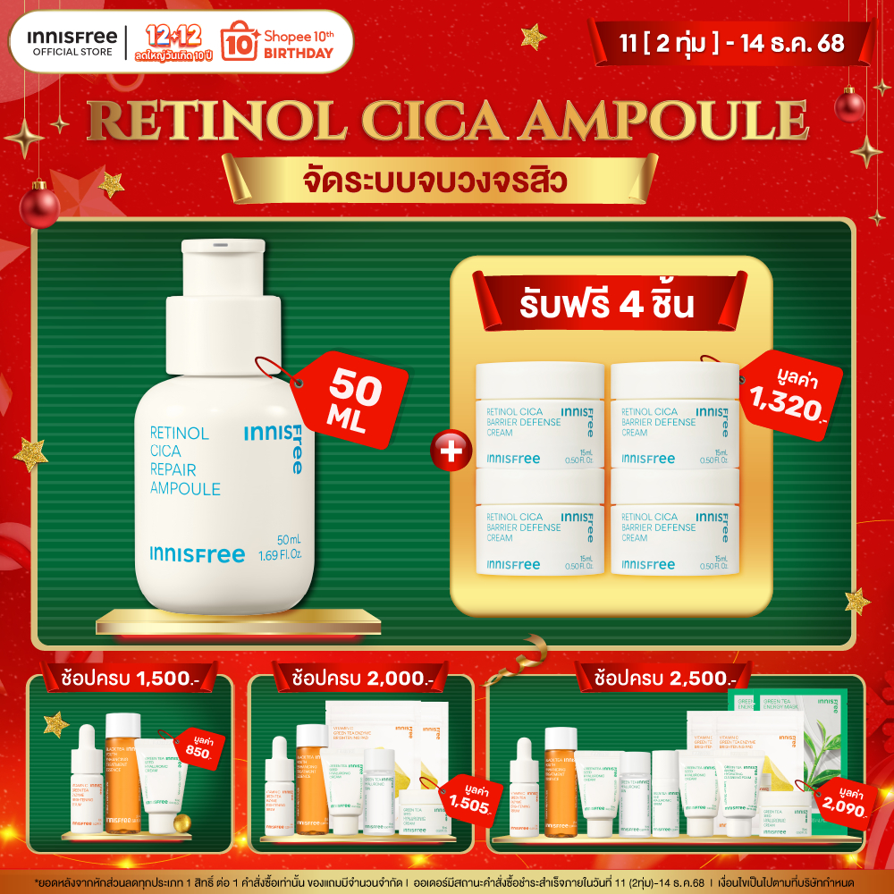 [เริ่มแถมวันที่ 11(2ทุ่ม)ธ.ค.68] Innisfree Retinol Cica Ampoule 30ml. เรตินอล ซิก้า แอมพูล (จบวงจรสิว 0.015% retinol)
