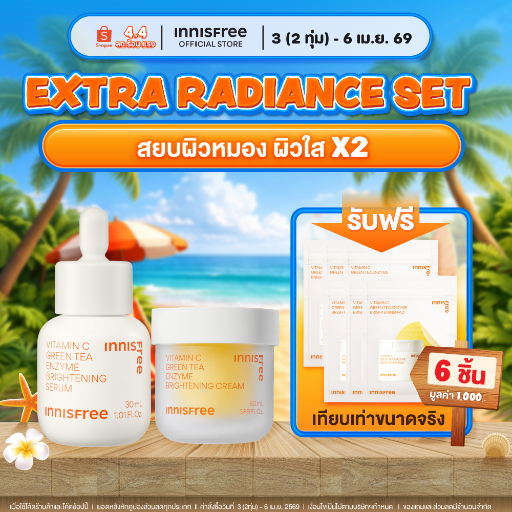 [แถม 6 ชิ้น วันที่ 3 (2ทุ่ม) เม.ย.69 ] Innisfree Extra Radiance Set (Vitamin C Serum 30ml. + Vitamin C Cream)