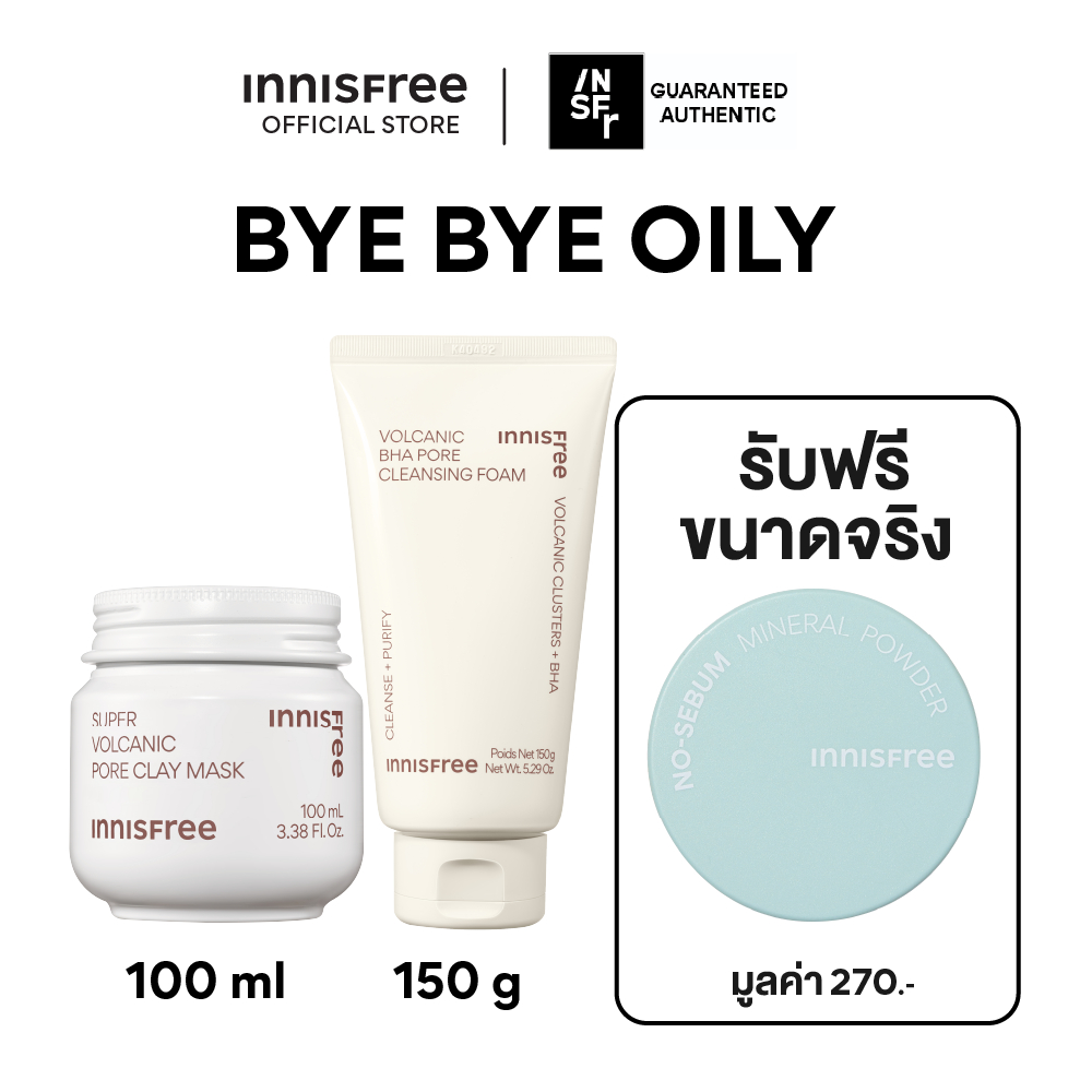[แถมฟรี! แป้ง No Sebum] Innisfree Bye Bye Oily Set (Volcanic Pore Clay Mask 100ml.+ Volcanic Foam 150g.) เซ็ตบอกลาผิวมัน