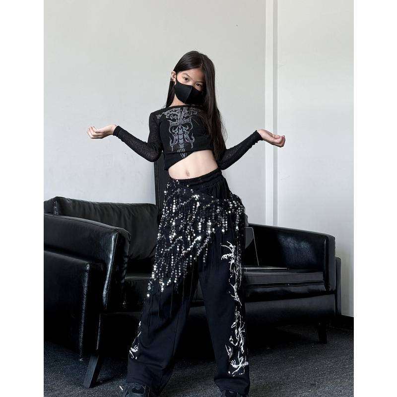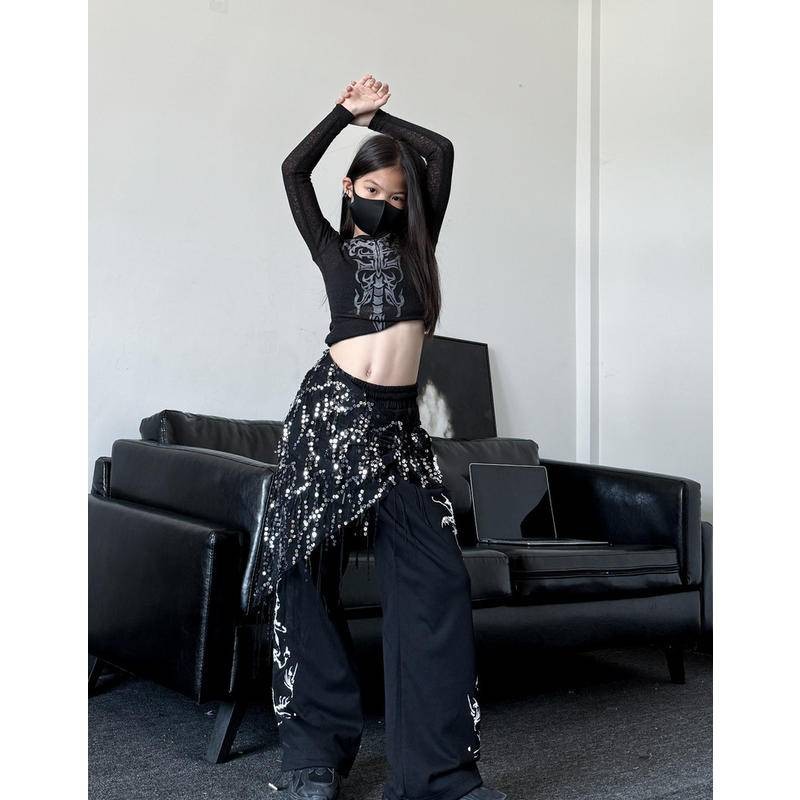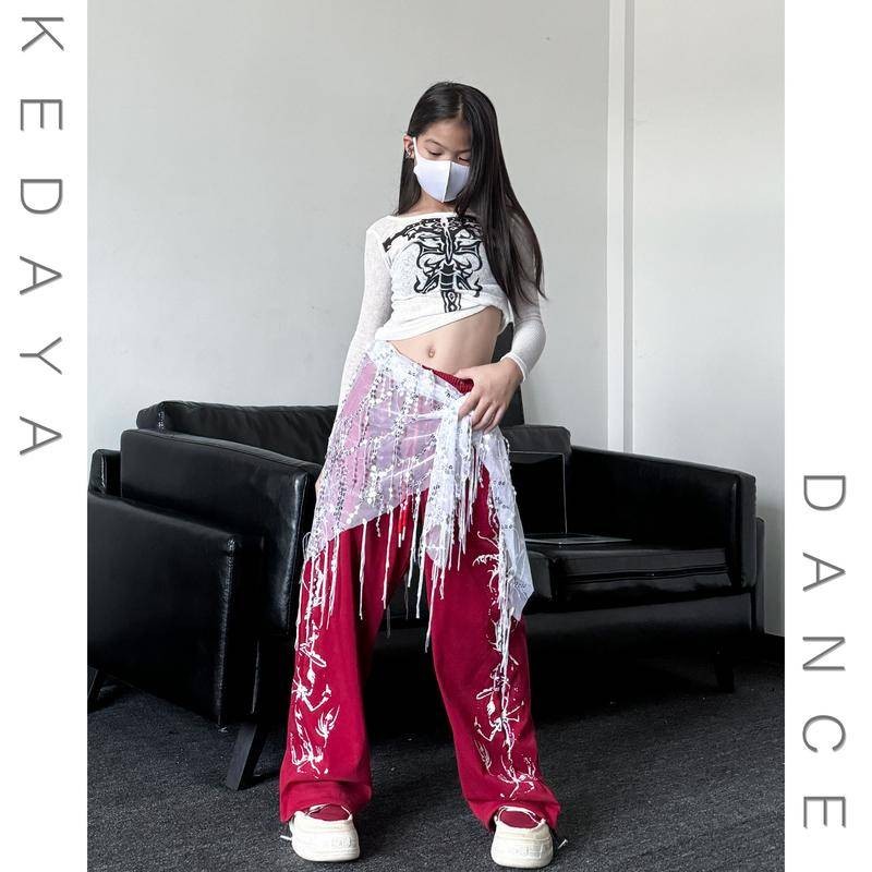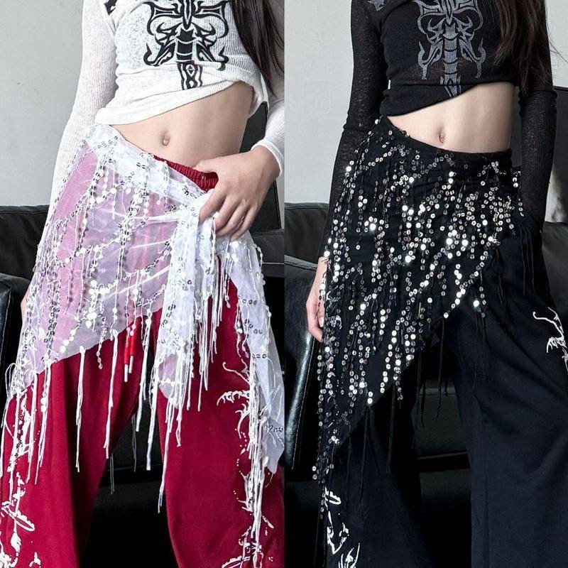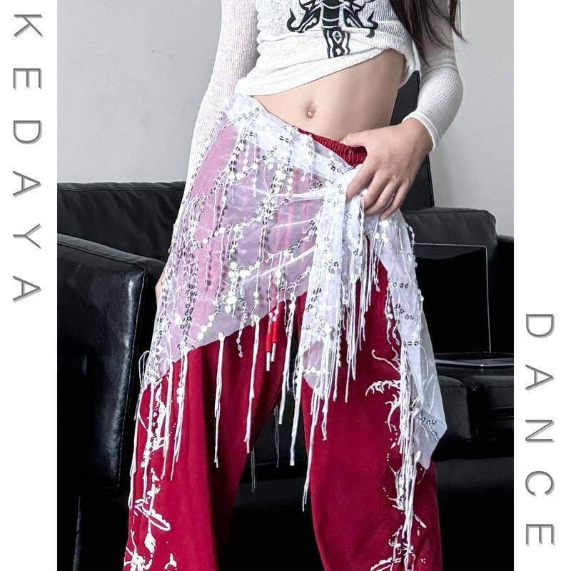 [KeDaYa] พร้อมส่ง ผ้าพันสะโพกเลื่อมระยิบระยับสำหรับเต้นระบำหน้าท้อง เข็มขัดสไตล์อินเดีย ชุดการแสดงแจ๊ส ชุดเวทีสำหรับเด็กผู้หญิง Y2K OOTD