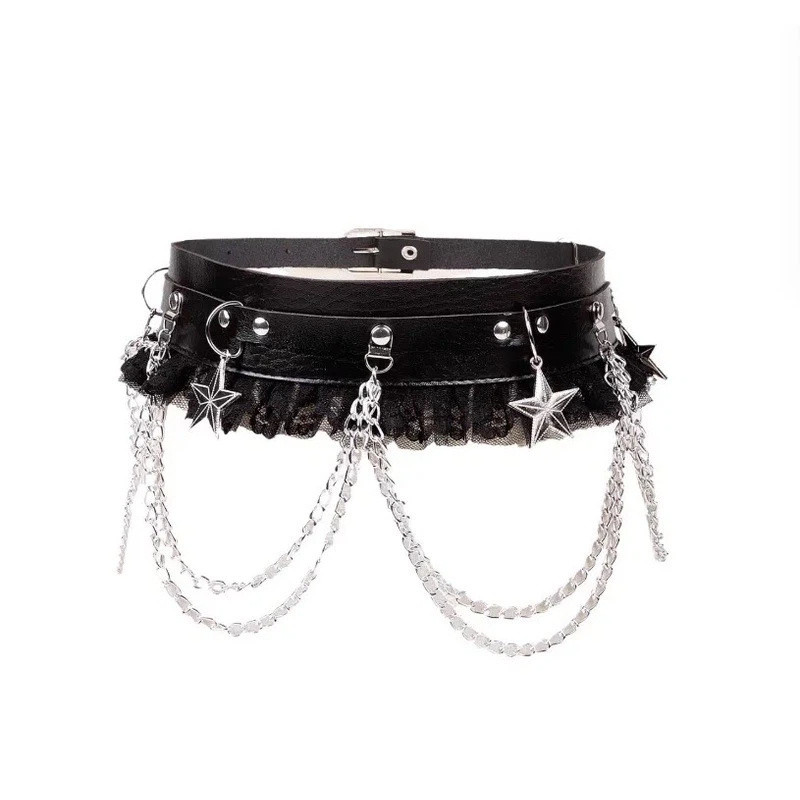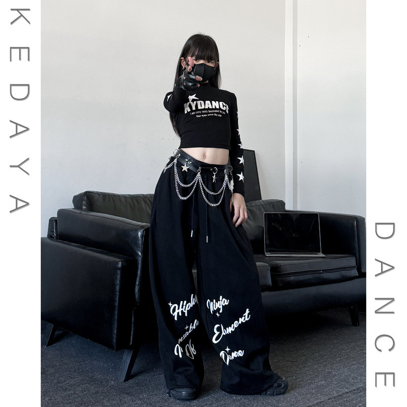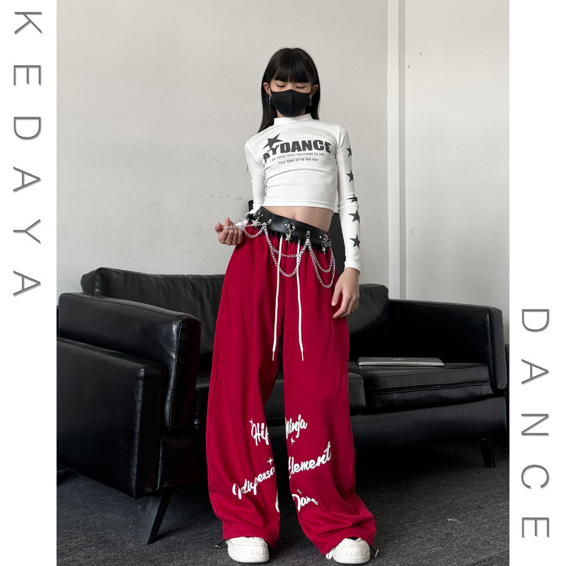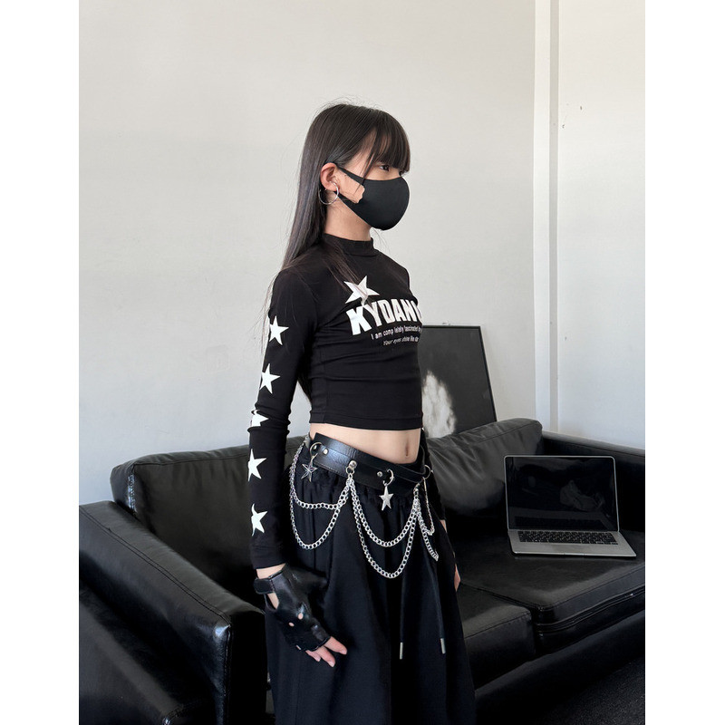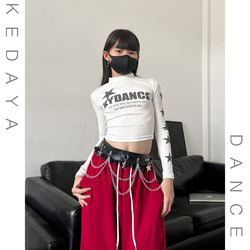 [KeDaYa] พร้อมส่ง เสื้อครอปลายดาว กางเกงวอร์มอเมริกัน ชุดเต้นแจ๊สฮิปฮอป เด็กผู้หญิง สายพังก์ พร้อมเข็มขัดเมทัล Y2K OOTD