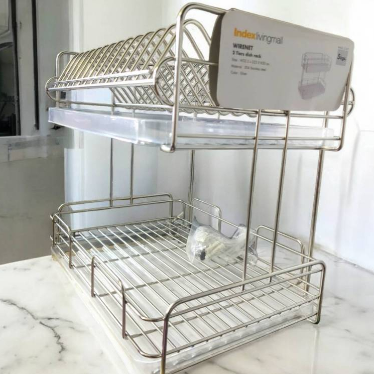 Index ชั้นคว่ำจานและถ้วย ยี่ห้อ index สแตนเลส 304 มีถาดรองน้ำ 32.5*23*30