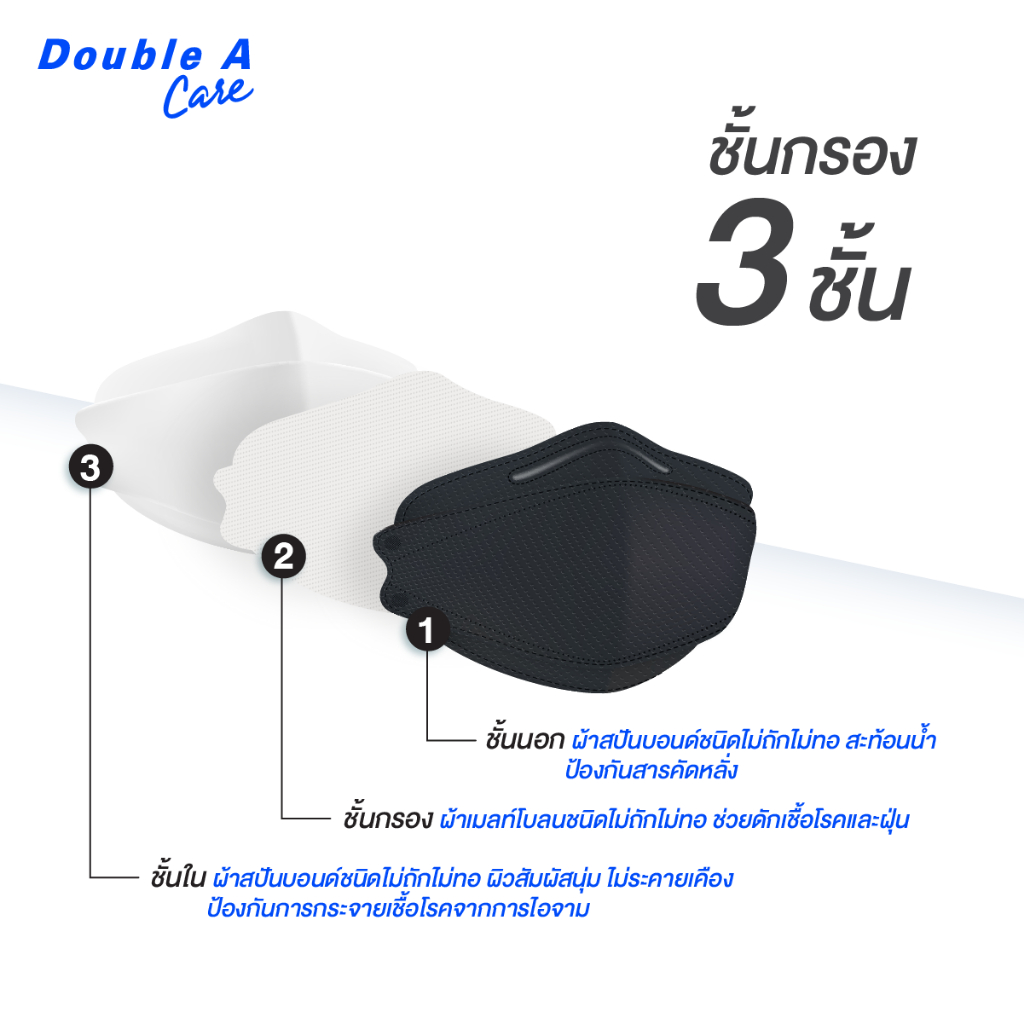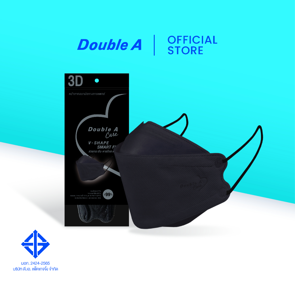 [แพ็ก 10 สีดำ] Double A Care หน้ากากอนามัยทางการแพทย์ 3D V-SHAPE Smart Fit สีดำ บรรจุ 10 ชิ้น/แพ็ก