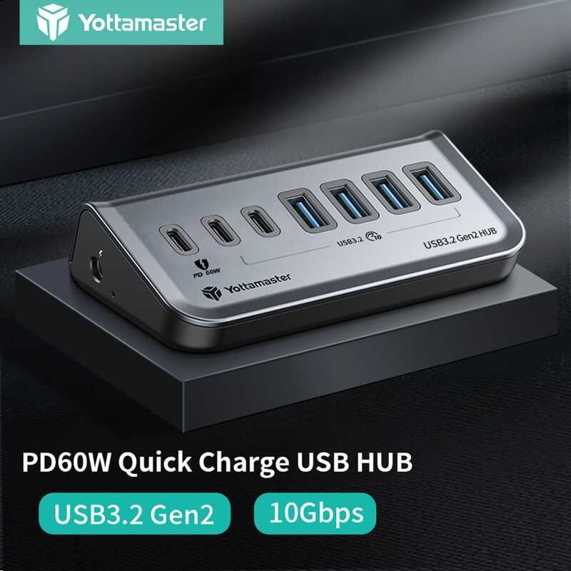 10Gbps USB3.2 Yottamaster Gen2 Type 4 7 Ports PD60W High Speed Multifunctional Expansion Docking St