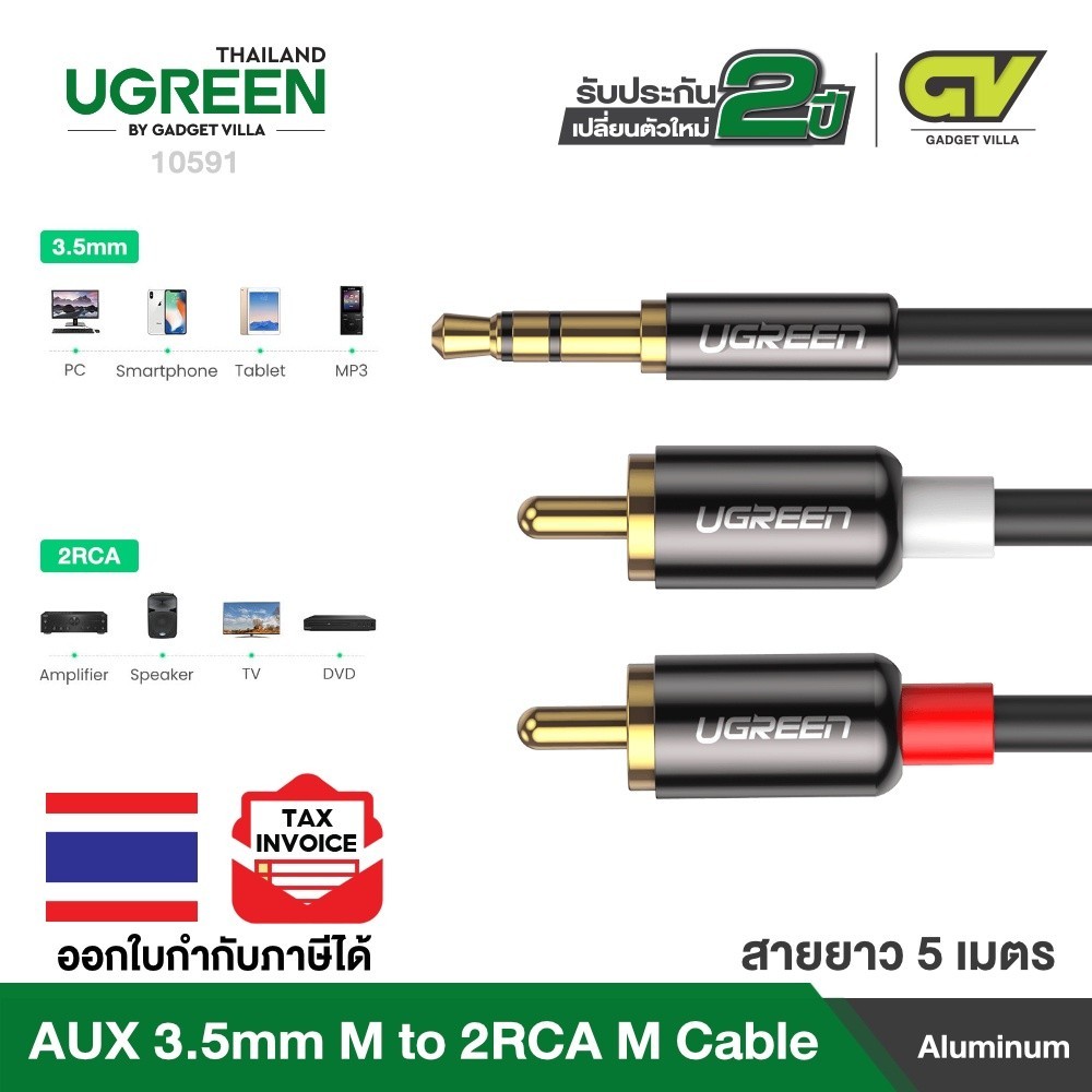 UGREEN รุ่น AV116 สายAUX 3.5mm to 2RCA สายสัญญาณเสียง AUX เข้า1ออก2 High End Aluminum