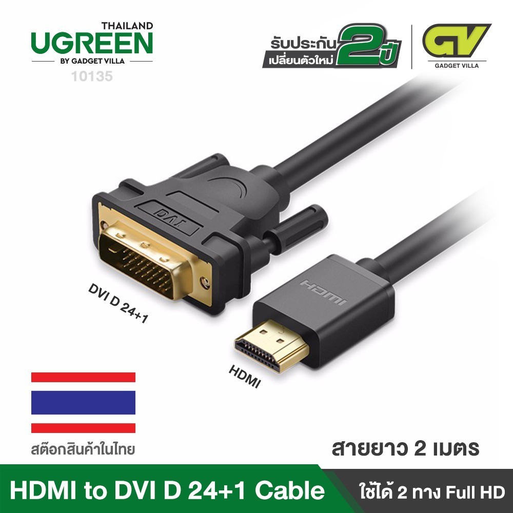 UGREEN รุ่น HD106 สาย HDMI to DVI 24+1 Cable รองรับภาพ FHD 1080P ใช้งานได้ 2 ทิศทาง