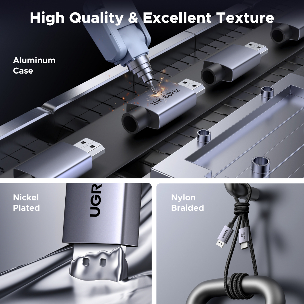 Ugreen สาย DisplayPort 2.1 80Gbps รองรับ 16K/60Hz สำหรับจอเกมมิ่ง การตัดต่อ รุ่น DP131