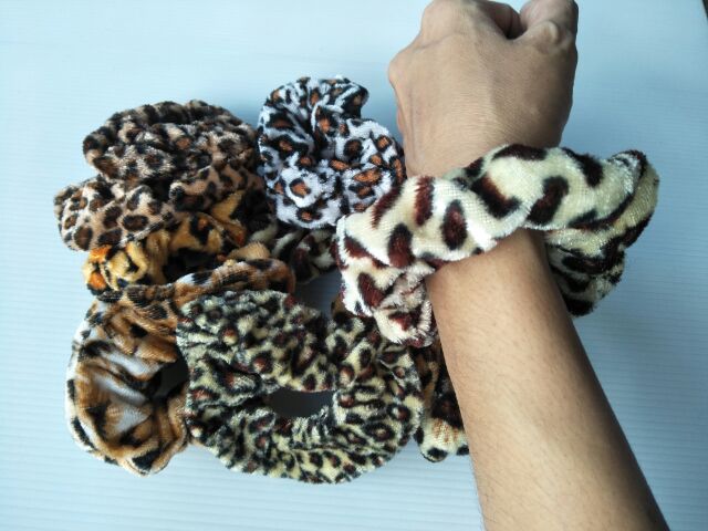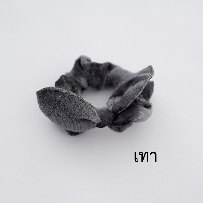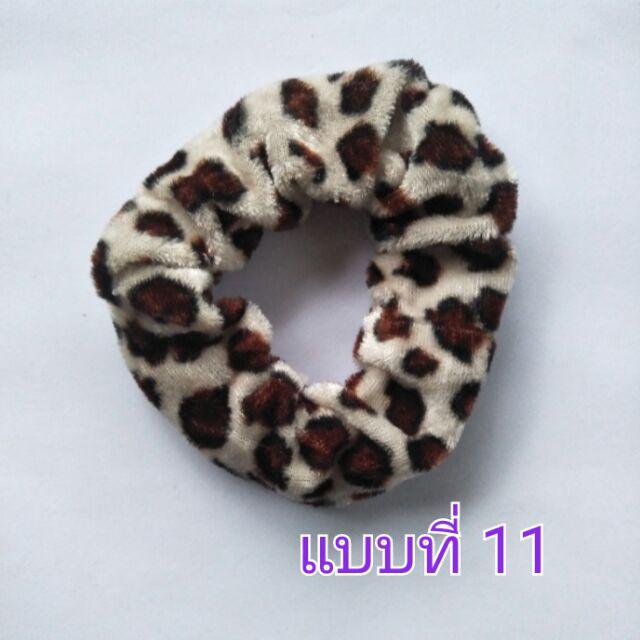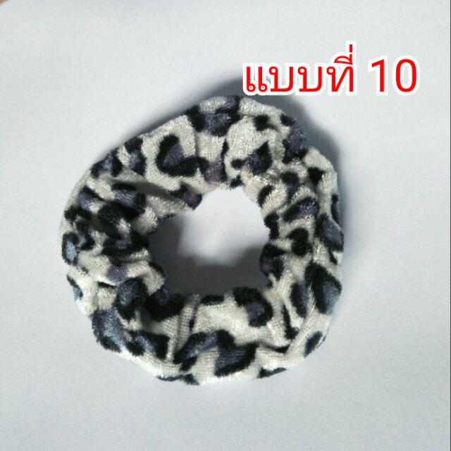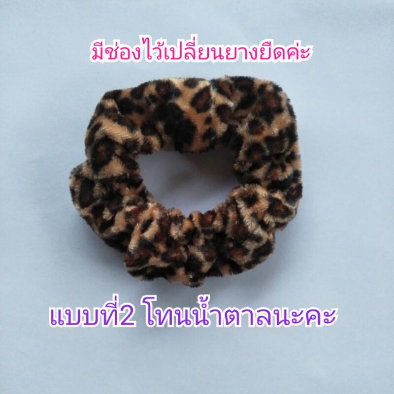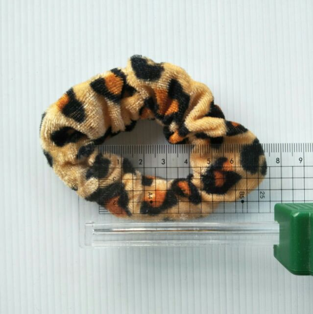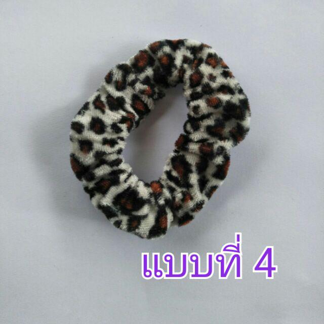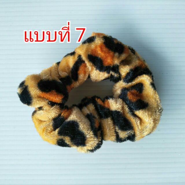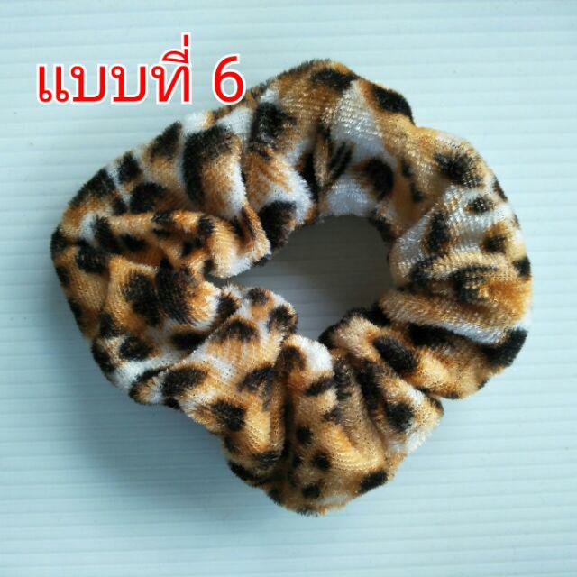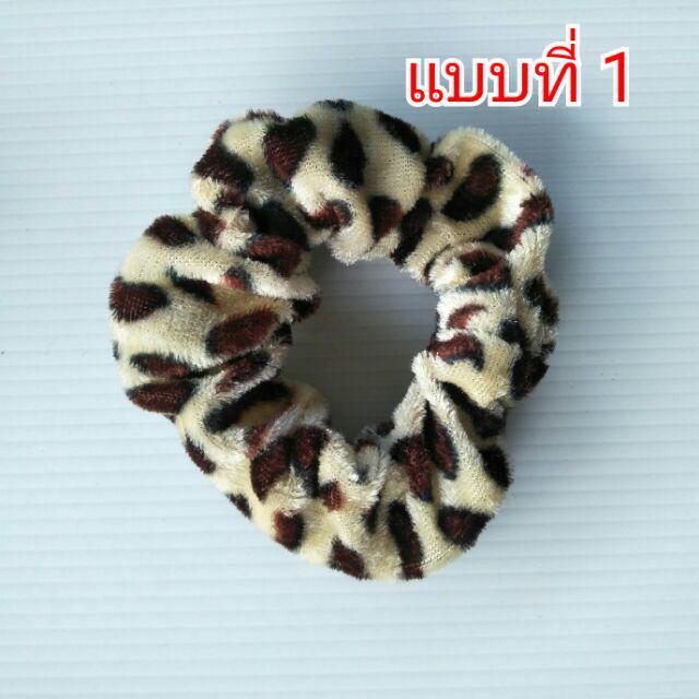 โดนัทลายเสือ กำมะหยี่โบว์ ยางรัดผมยางยืดปลายลูกปัด (1 ชิ้น)