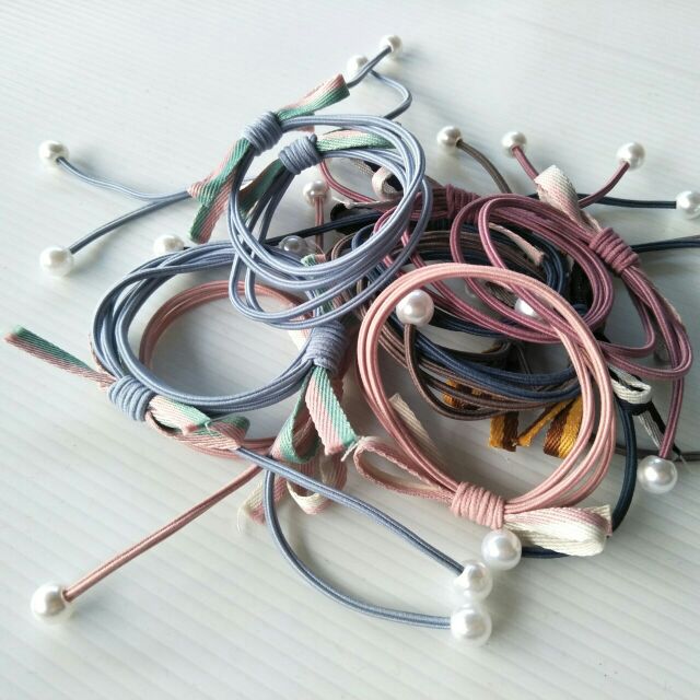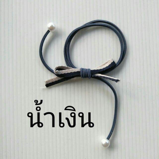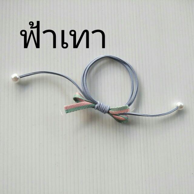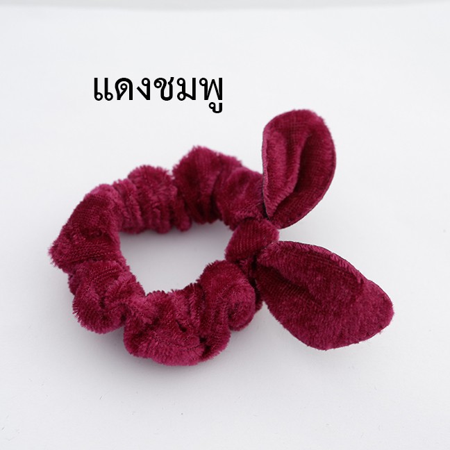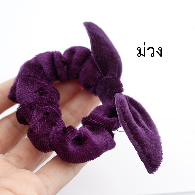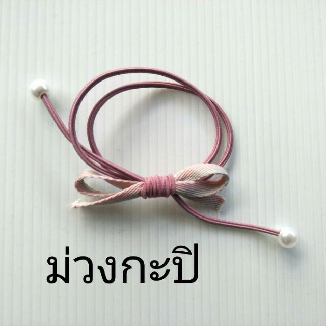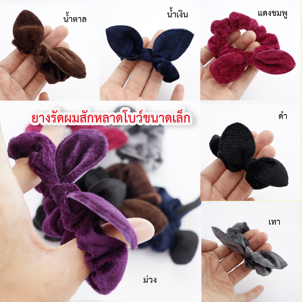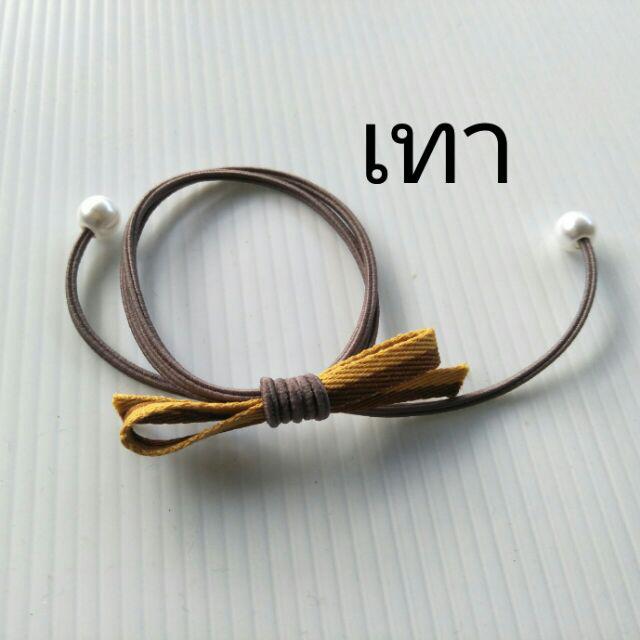 โดนัทลายเสือ กำมะหยี่โบว์ ยางรัดผมยางยืดปลายลูกปัด (1 ชิ้น)