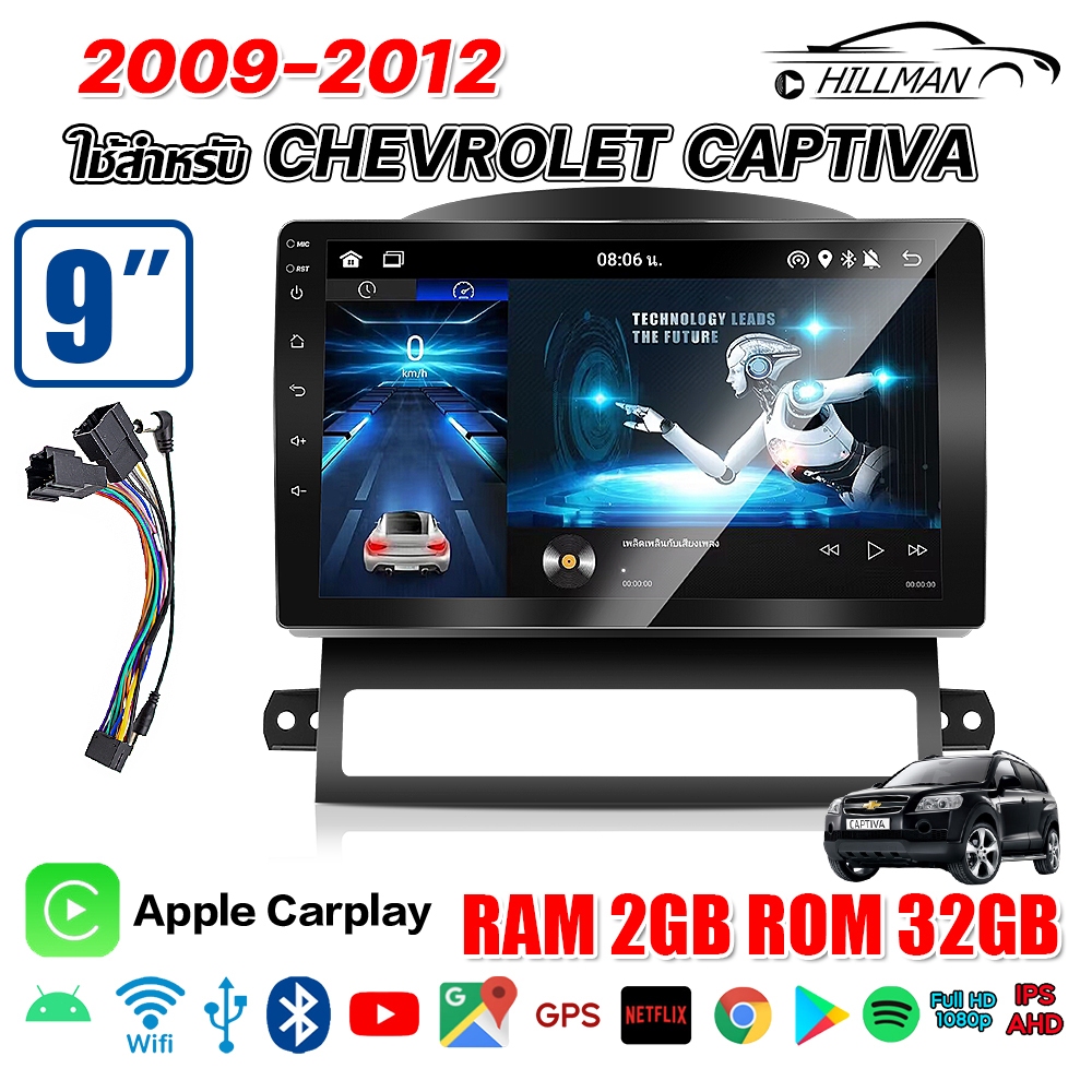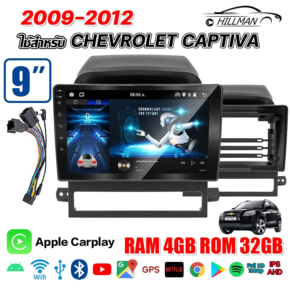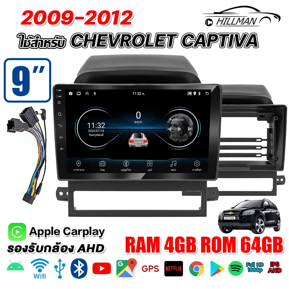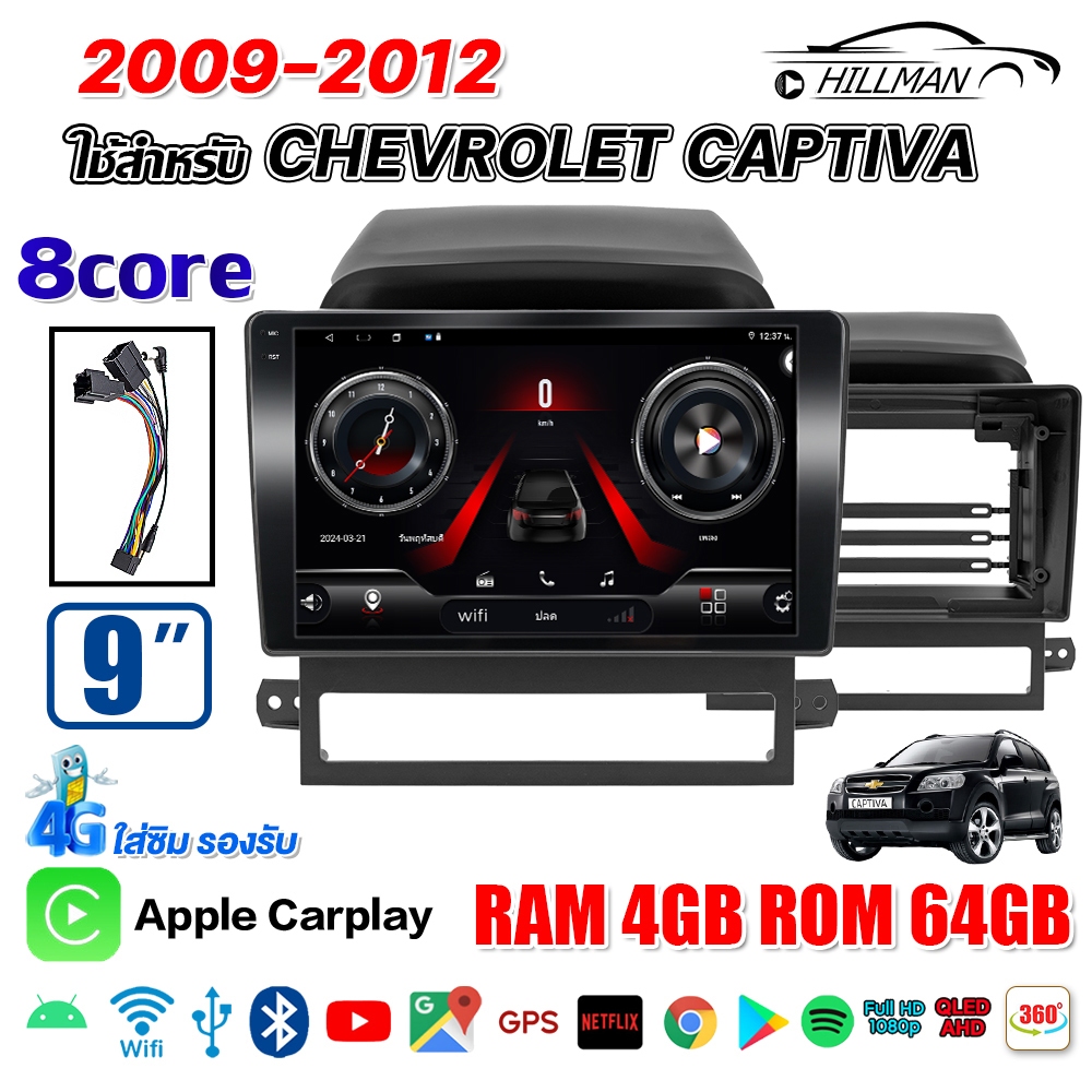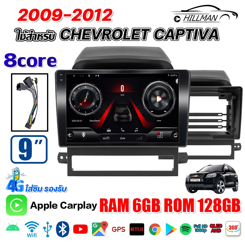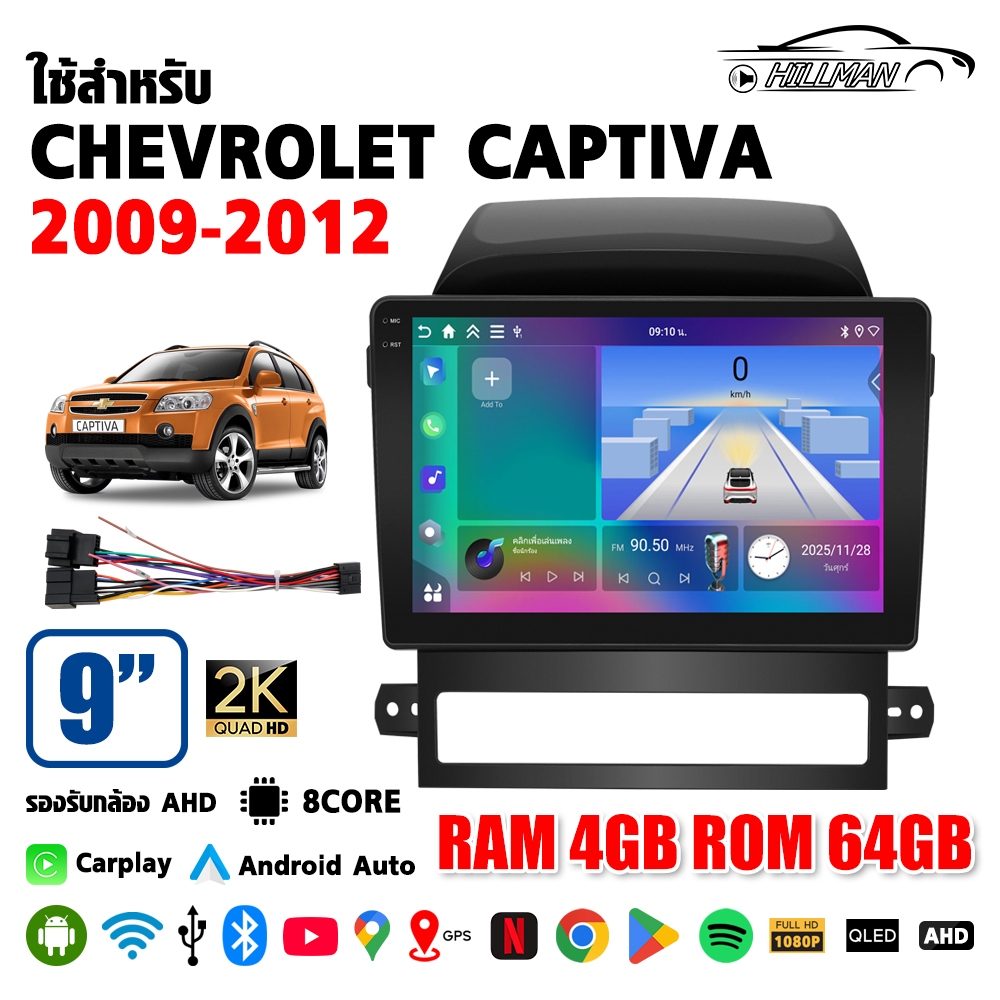 HILMAN จอแอนดรอย 9 นิ้ว ใช้สำหรับ CHEVROIET CAPTIVA 2009-2012 แอนดรอยด์ 14.0 GPS 360° WIFI Apple Carplay Android