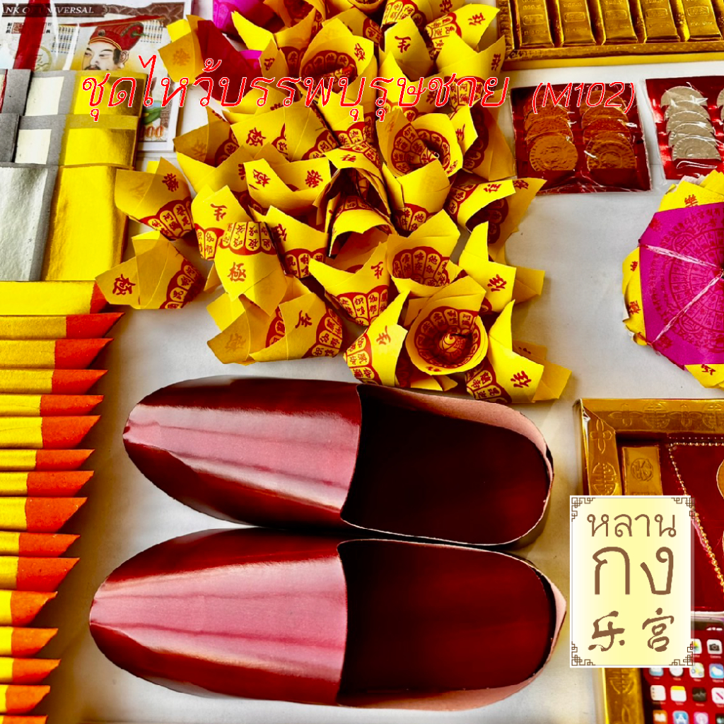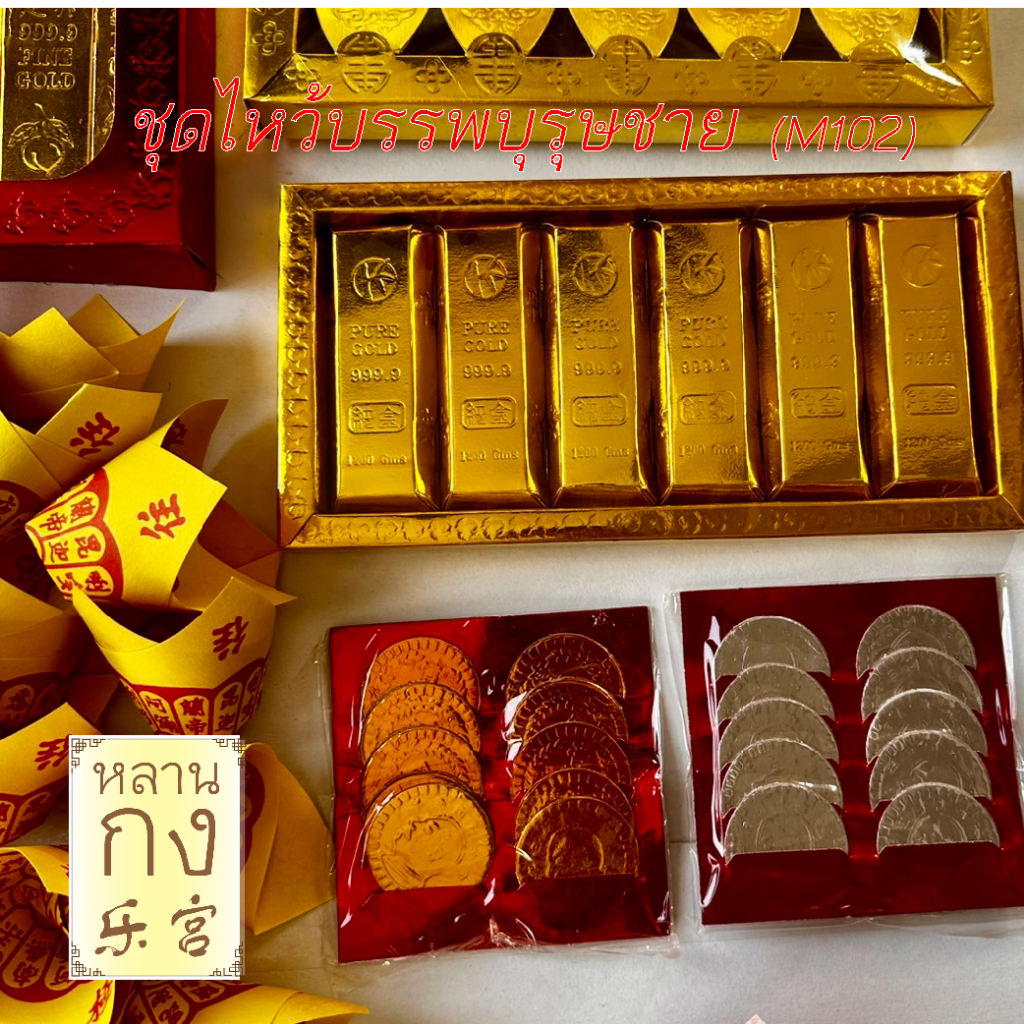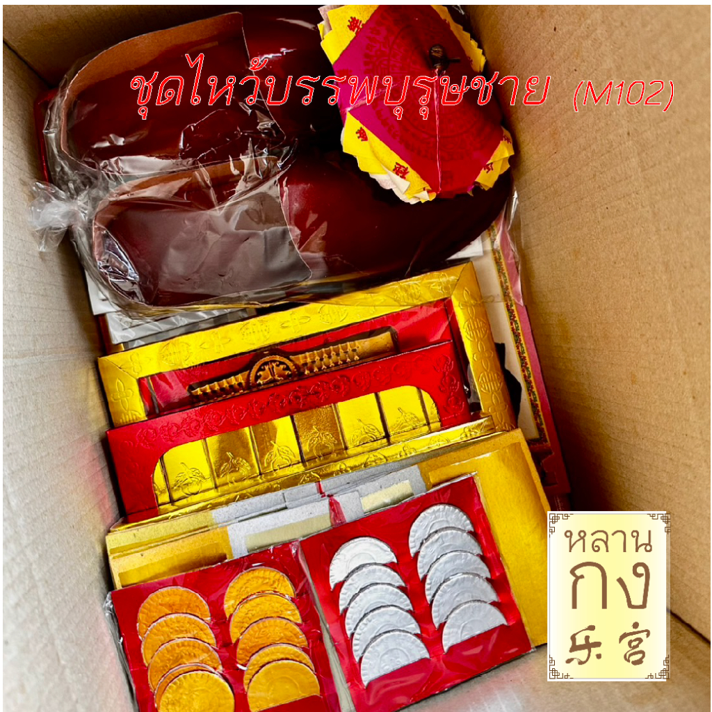 หลานกง : ตรุษจีน สาร์ทจีน ชุดไหว้บรรพบุรุษชาย M102 หมาะสำหรับวันที่เร่งรีบ ทองแท่ง โหงวฮกตุ้ง กระดาษไหว้เจ้า