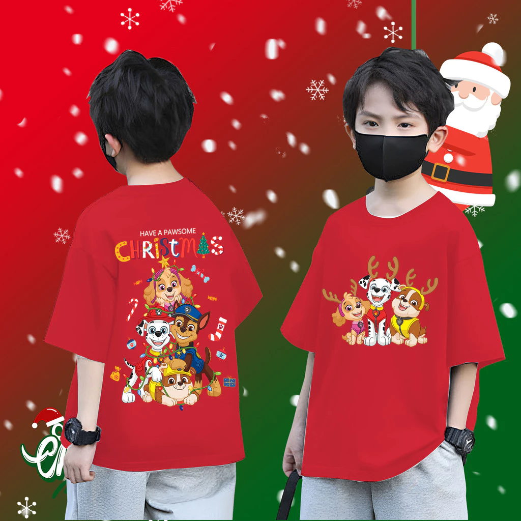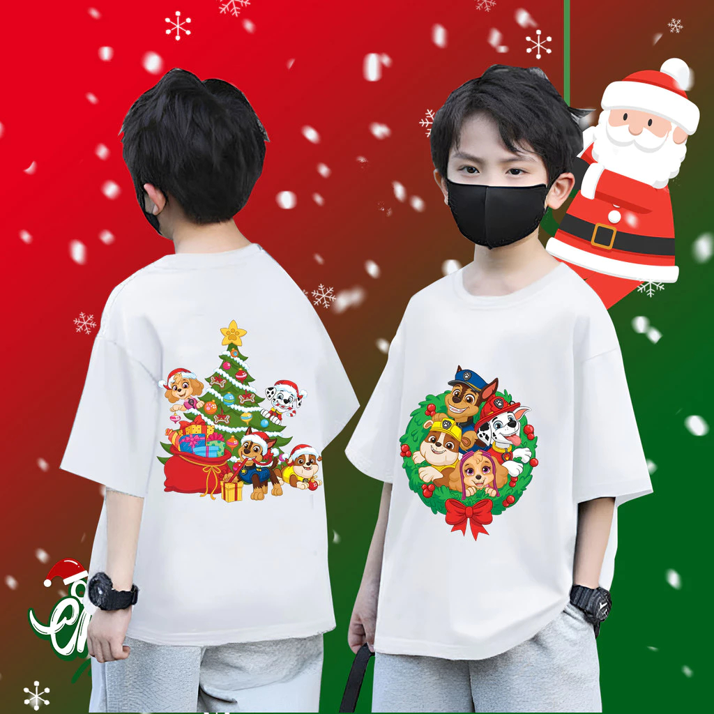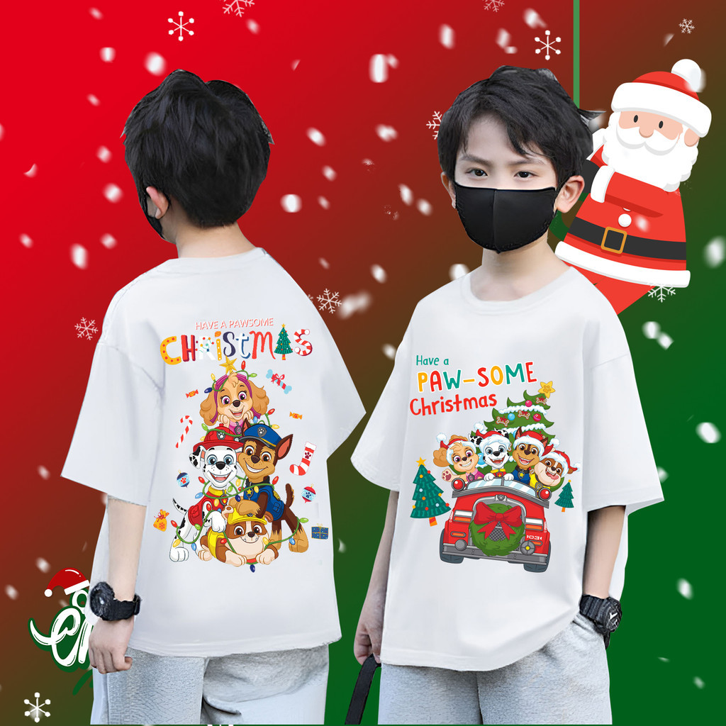 (จัดส่งตลอด 24 ชั่วโมง)KIDS PRINCESS Cute PAW Patrol & Christmas เสื้อยืดเด็ก