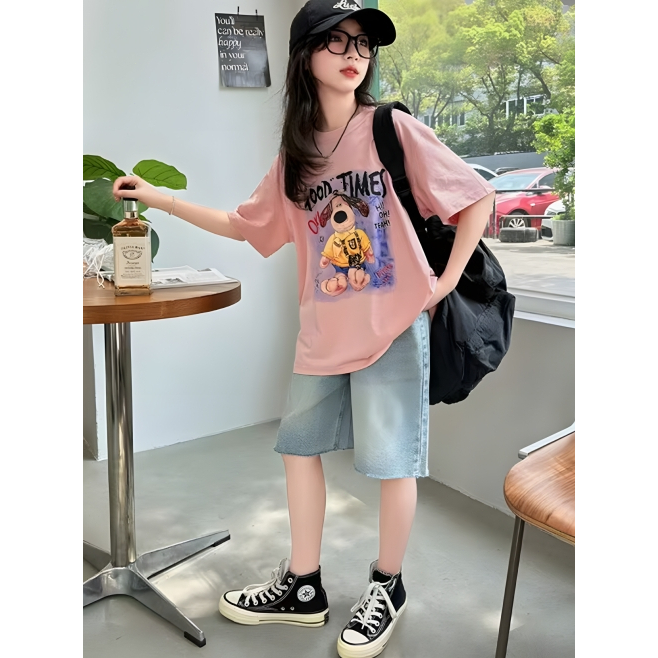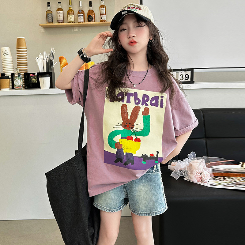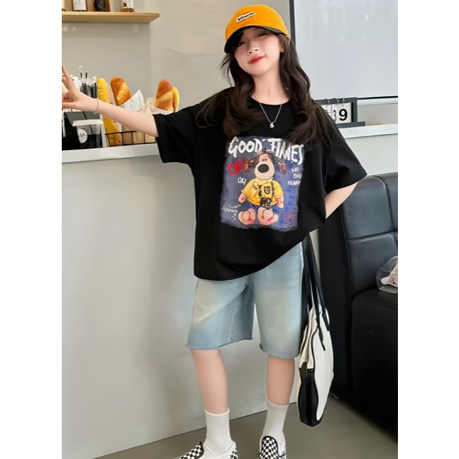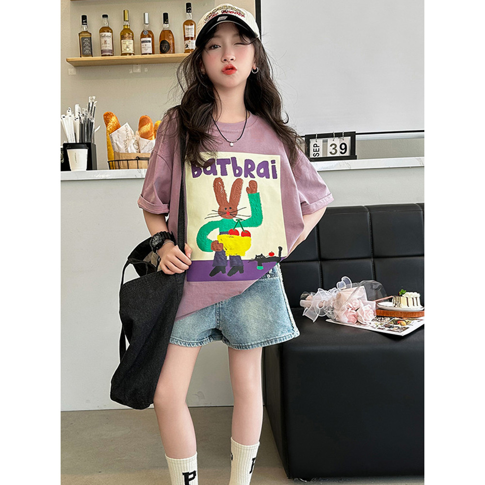 (จัดส่งตลอด 24 ชั่วโมง)KIDS PRINCESS มาใหม่เด็กแขนสั้นเสื้อยืดฤดูร้อนการ์ตูนพิมพ์รอบคอผ้าฝ้ายด้านบน D62