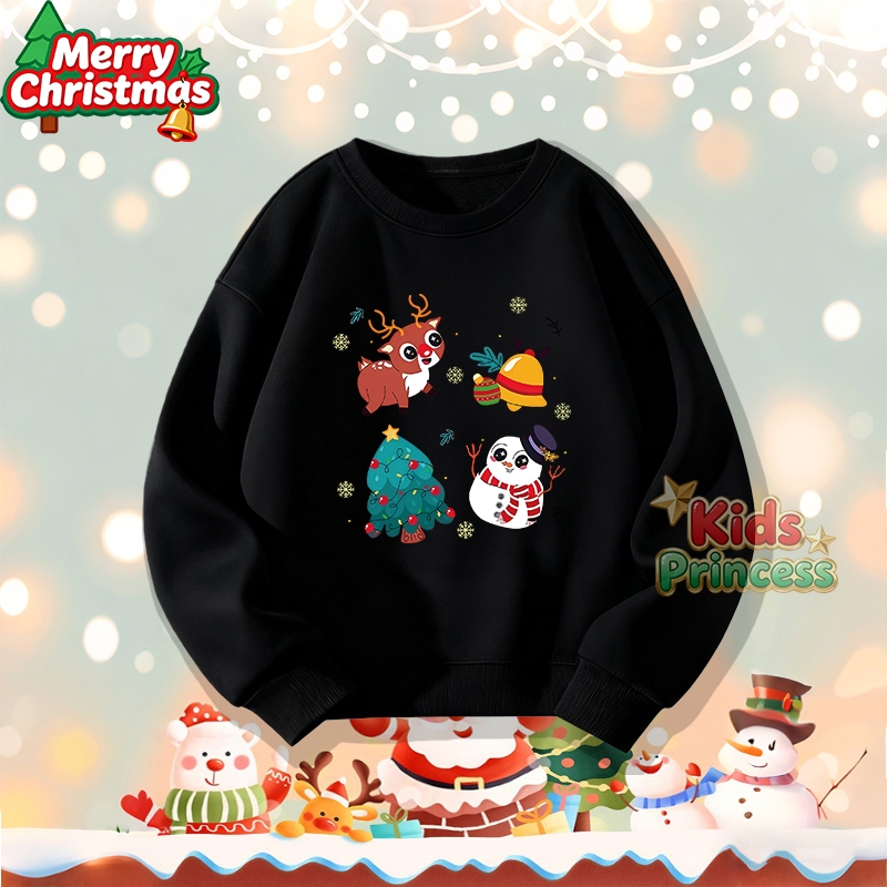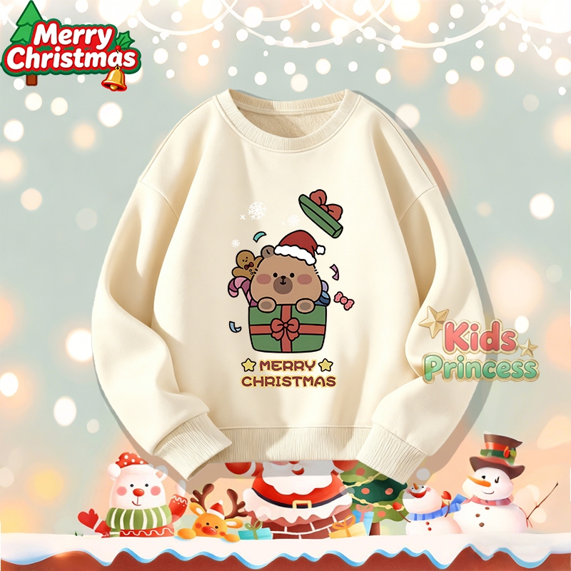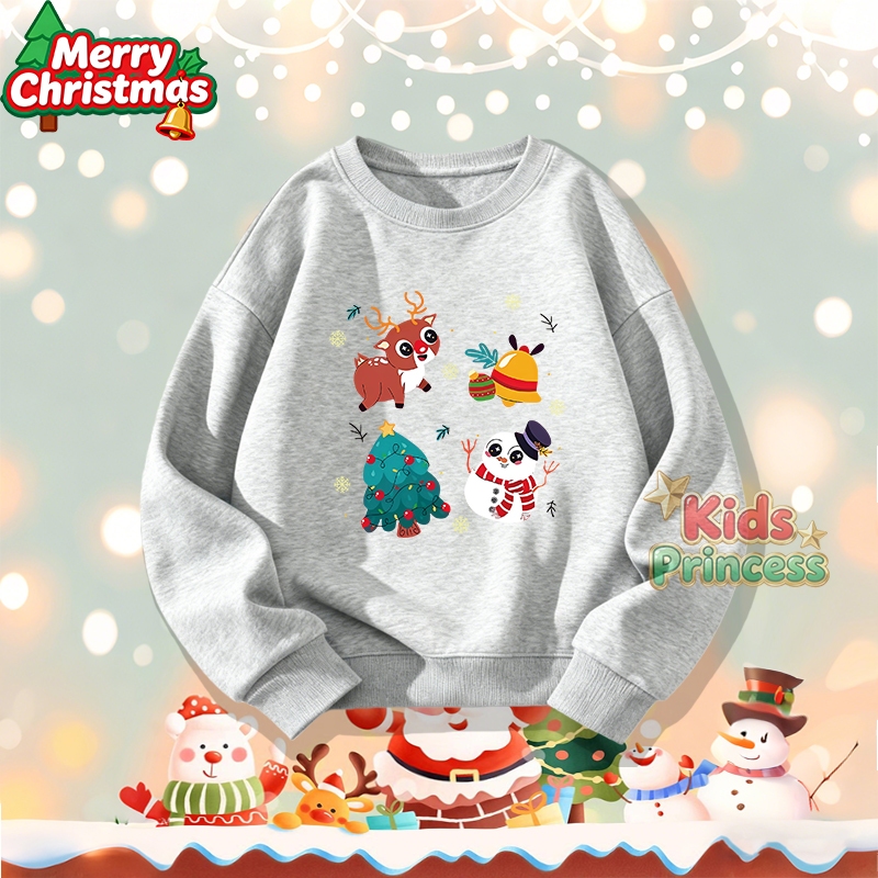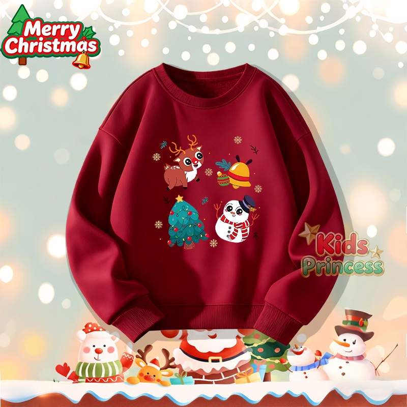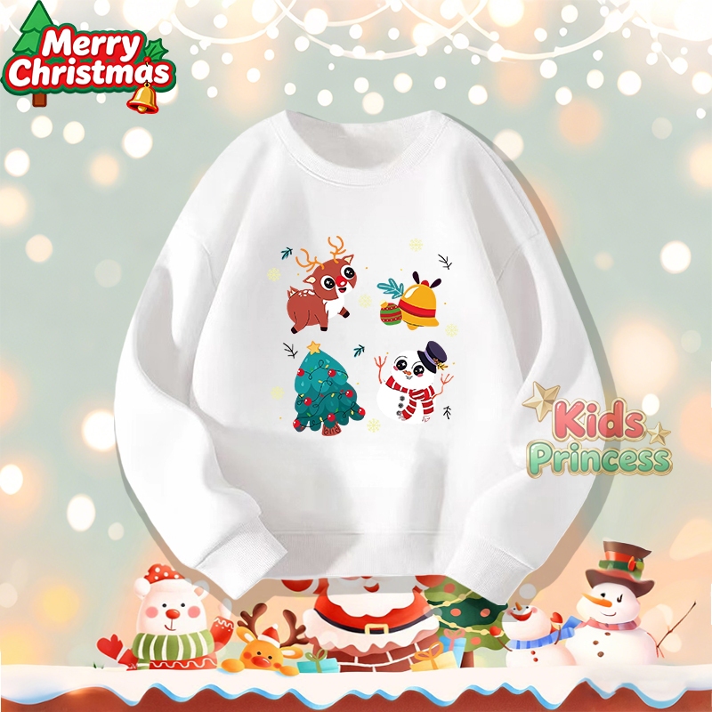 (จัดส่งตลอด 24 ชั่วโมง) สินค้าใหม่ เทศกาลคริสต์มาส 2026 kids คอกลม เสื้อวีนที่แขนยาว เสื้อวินเทจคอกลม 100% ผ้าใบหม้อ W21