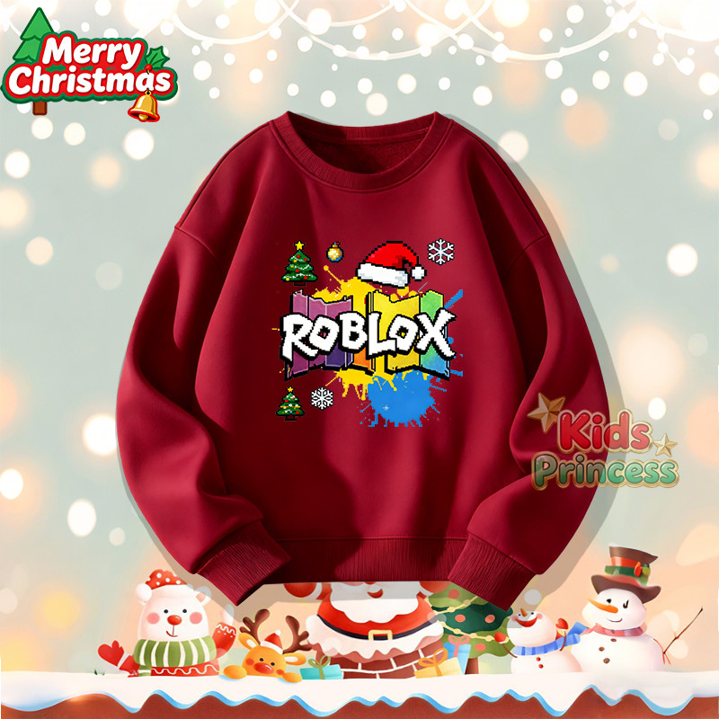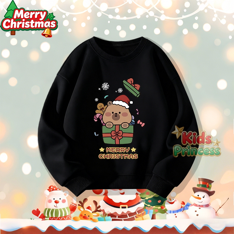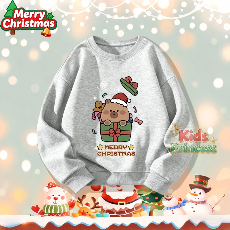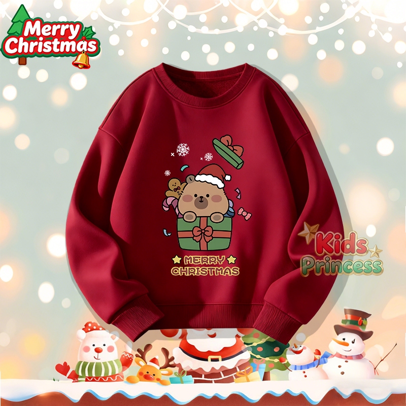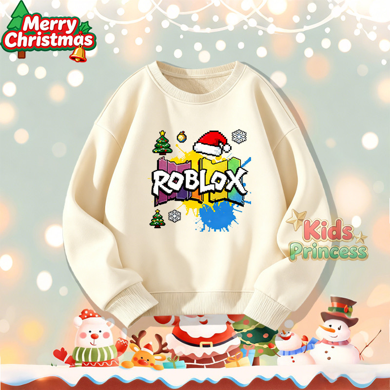 (จัดส่งตลอด 24 ชั่วโมง) สินค้าใหม่ เทศกาลคริสต์มาส 2026 kids คอกลม เสื้อวีนที่แขนยาว เสื้อวินเทจคอกลม 100% ผ้าใบหม้อ W21