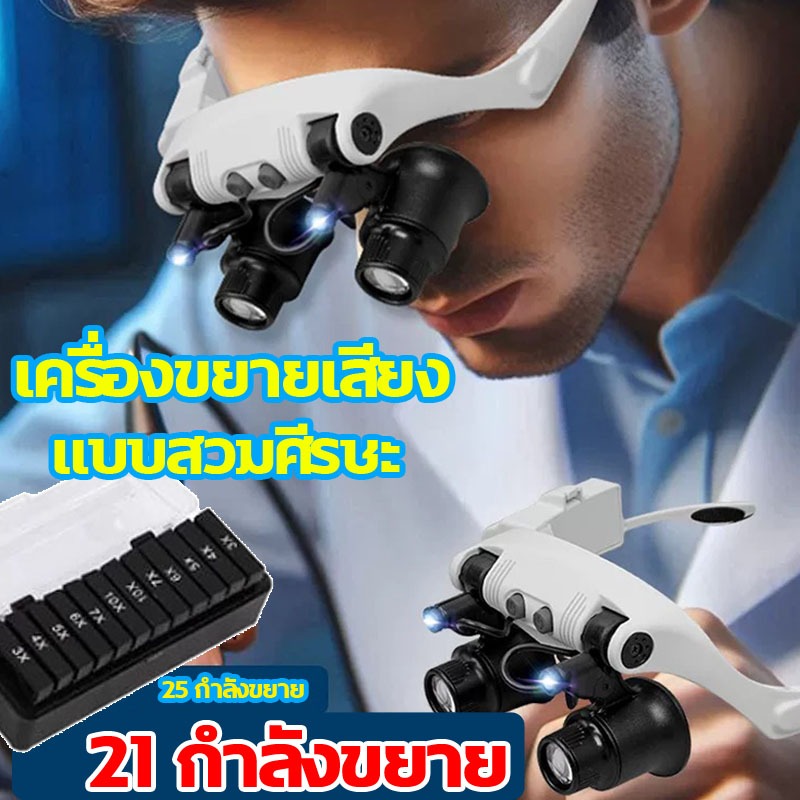🚚แว่นขยายติดศีรษะ🔥คุณภาพสูง เลนส์ขยายแบบมีไฟ 3x4x5x6x7x10แว่นขยาย สามารถสร้างทวีคูณได้ 21ขยาย 30 เท่า👓